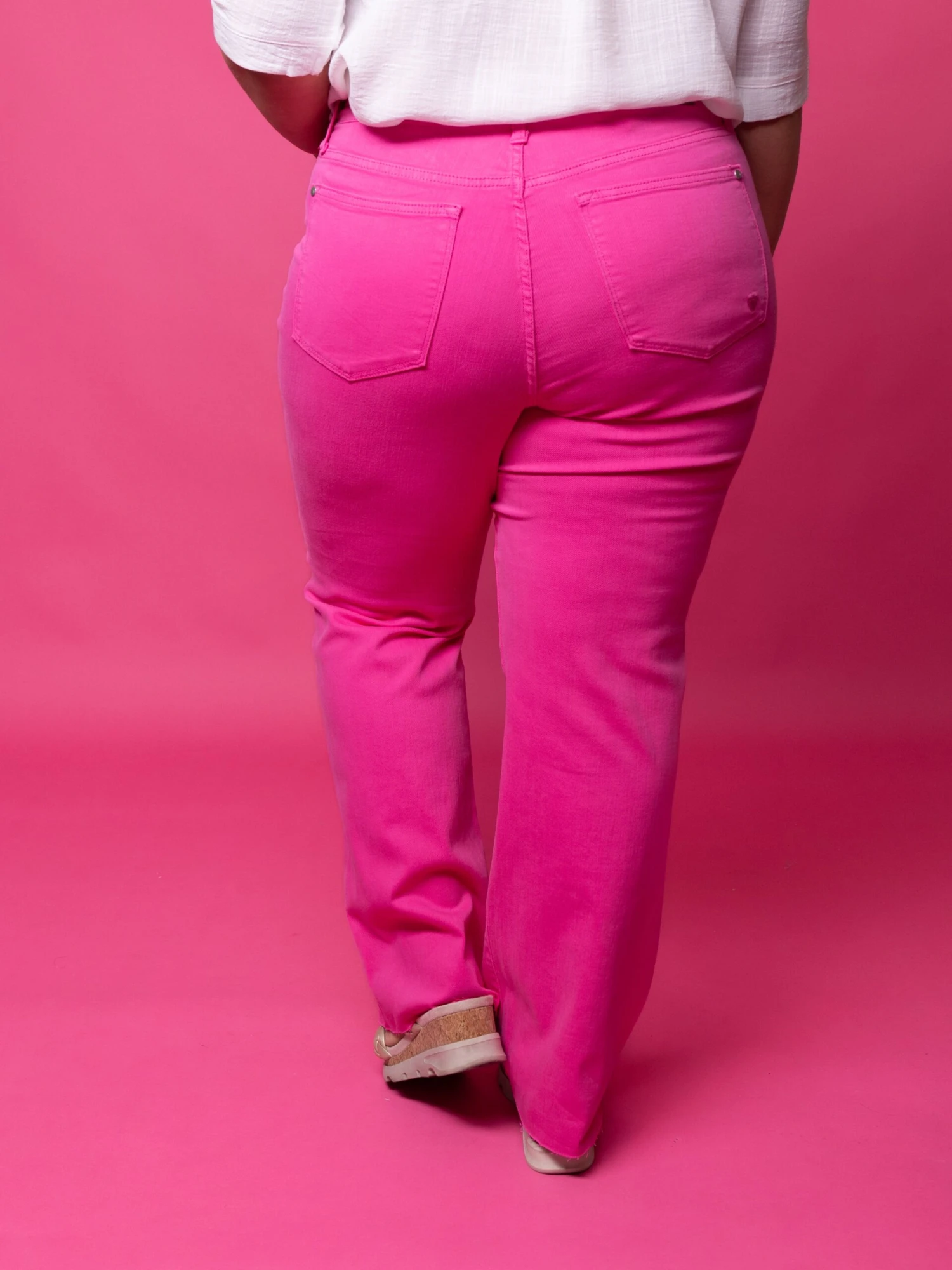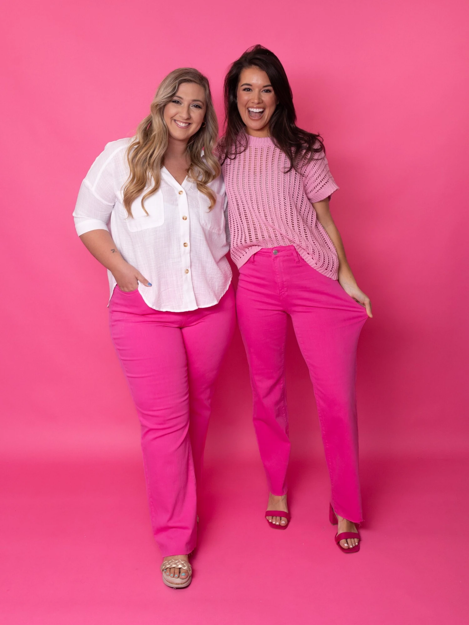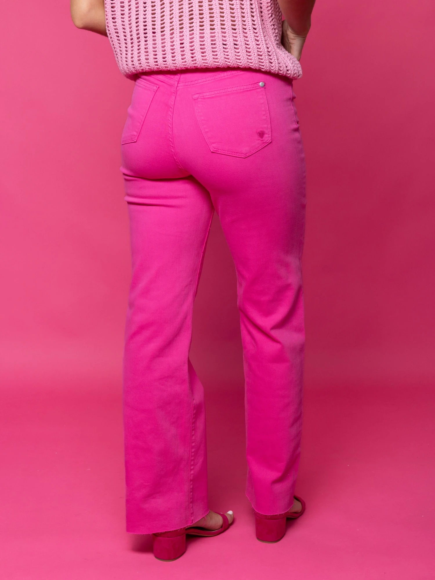 Do you see that gorgeous hot pink color and super cute heart embroidered on the back pockets?! The SOFTEST STRETCHIEST denim you will ever own!