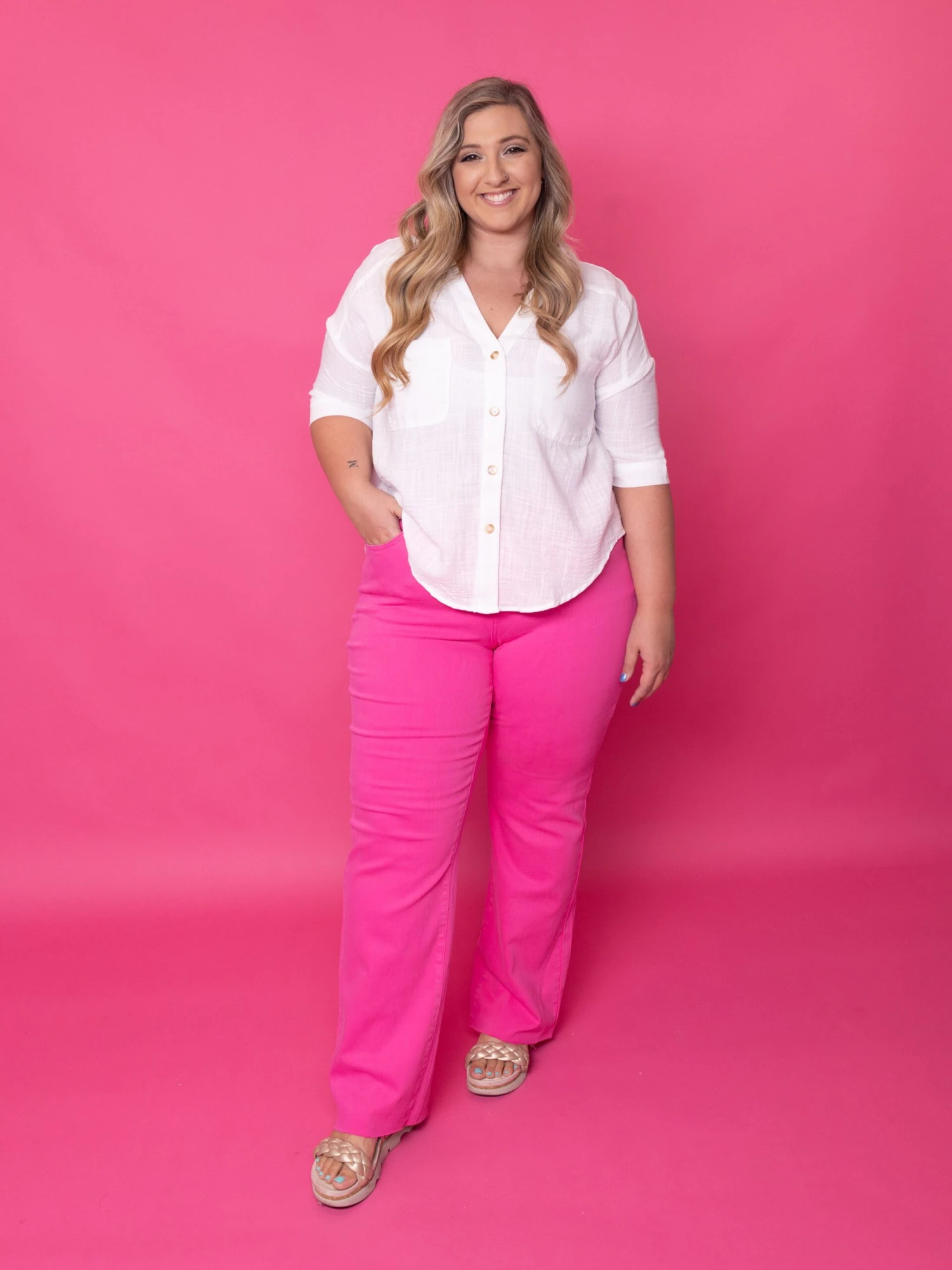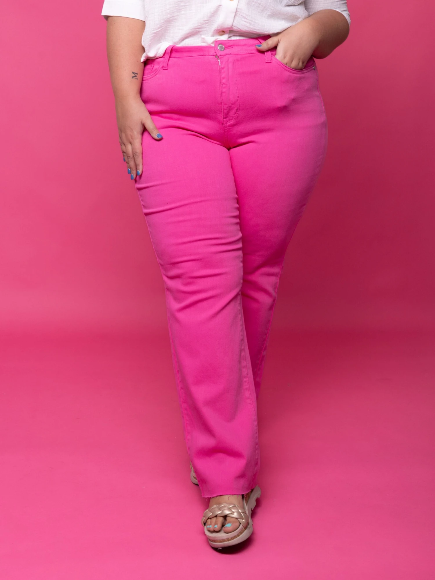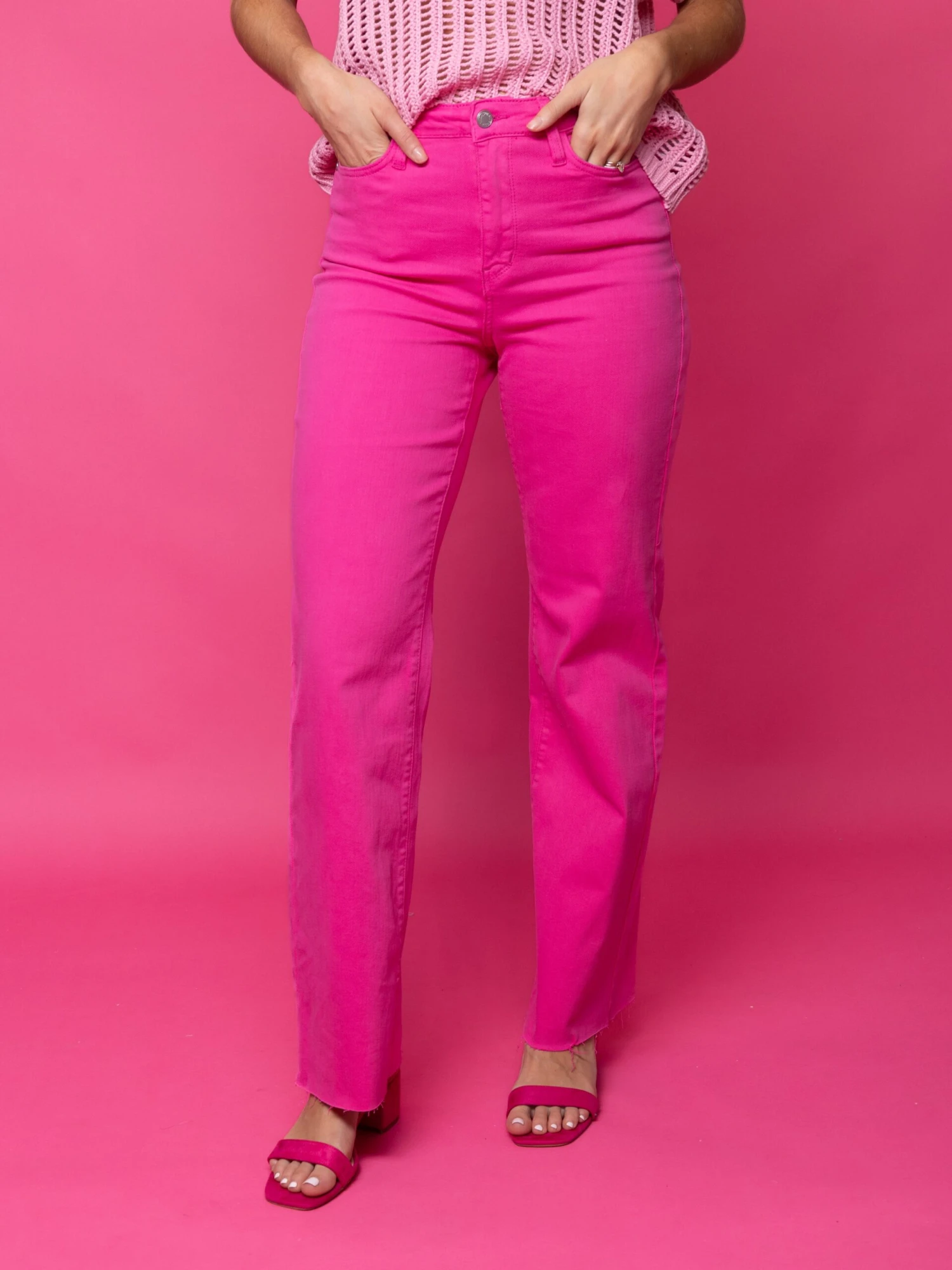 Do you see that gorgeous hot pink color and super cute heart embroidered on the back pockets?! The SOFTEST STRETCHIEST denim you will ever own!