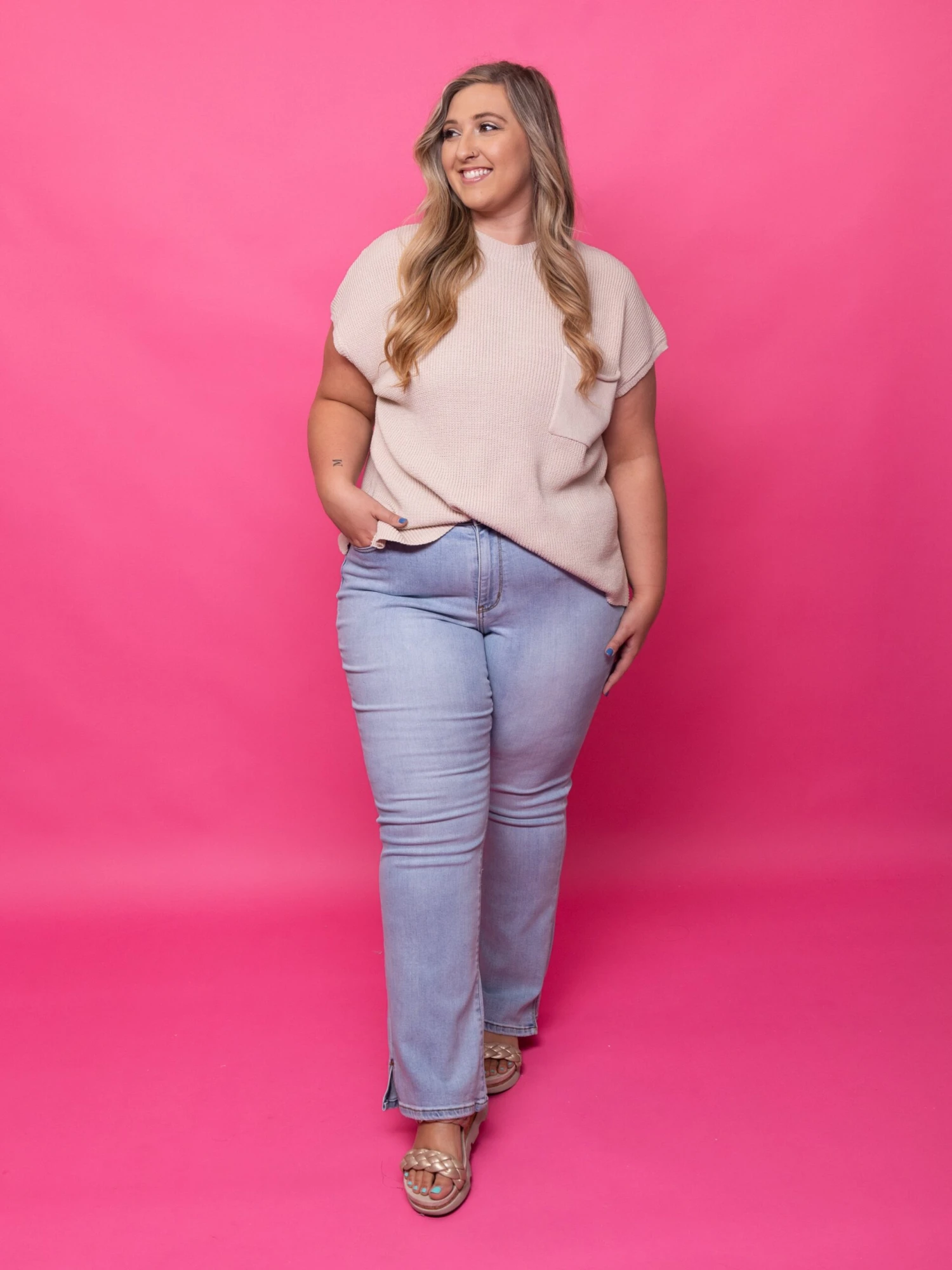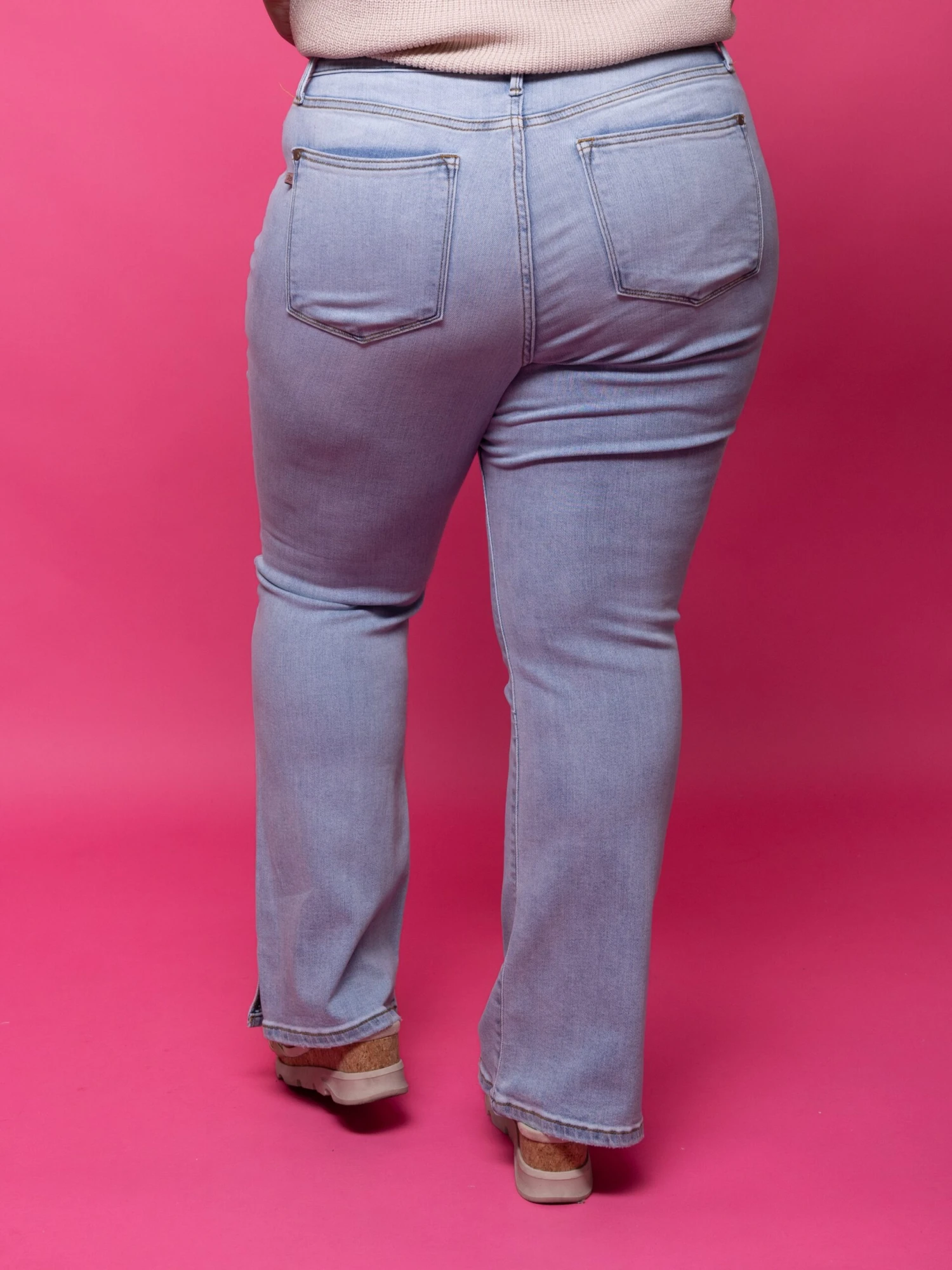 Features: Side Slit Hem, Bootcut, Mid Rise