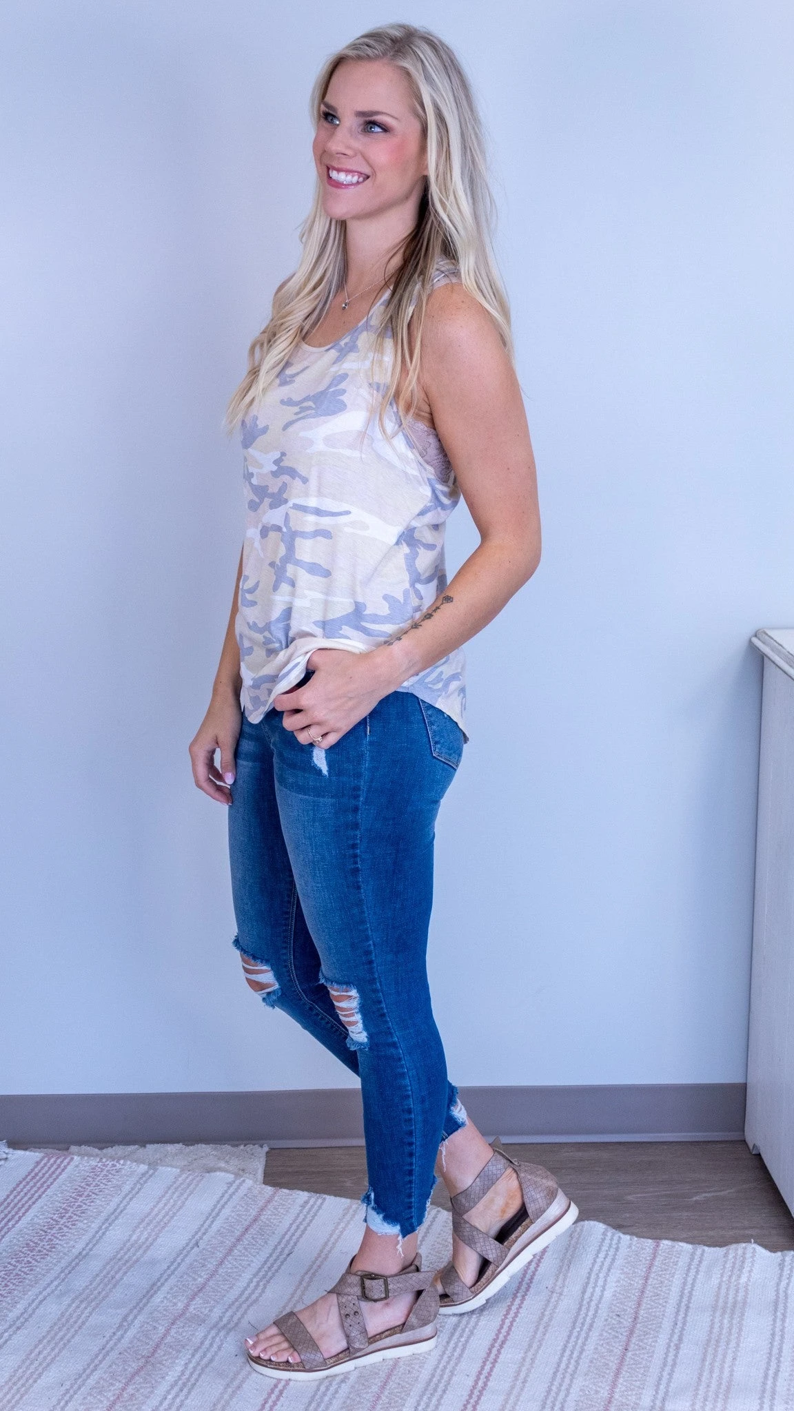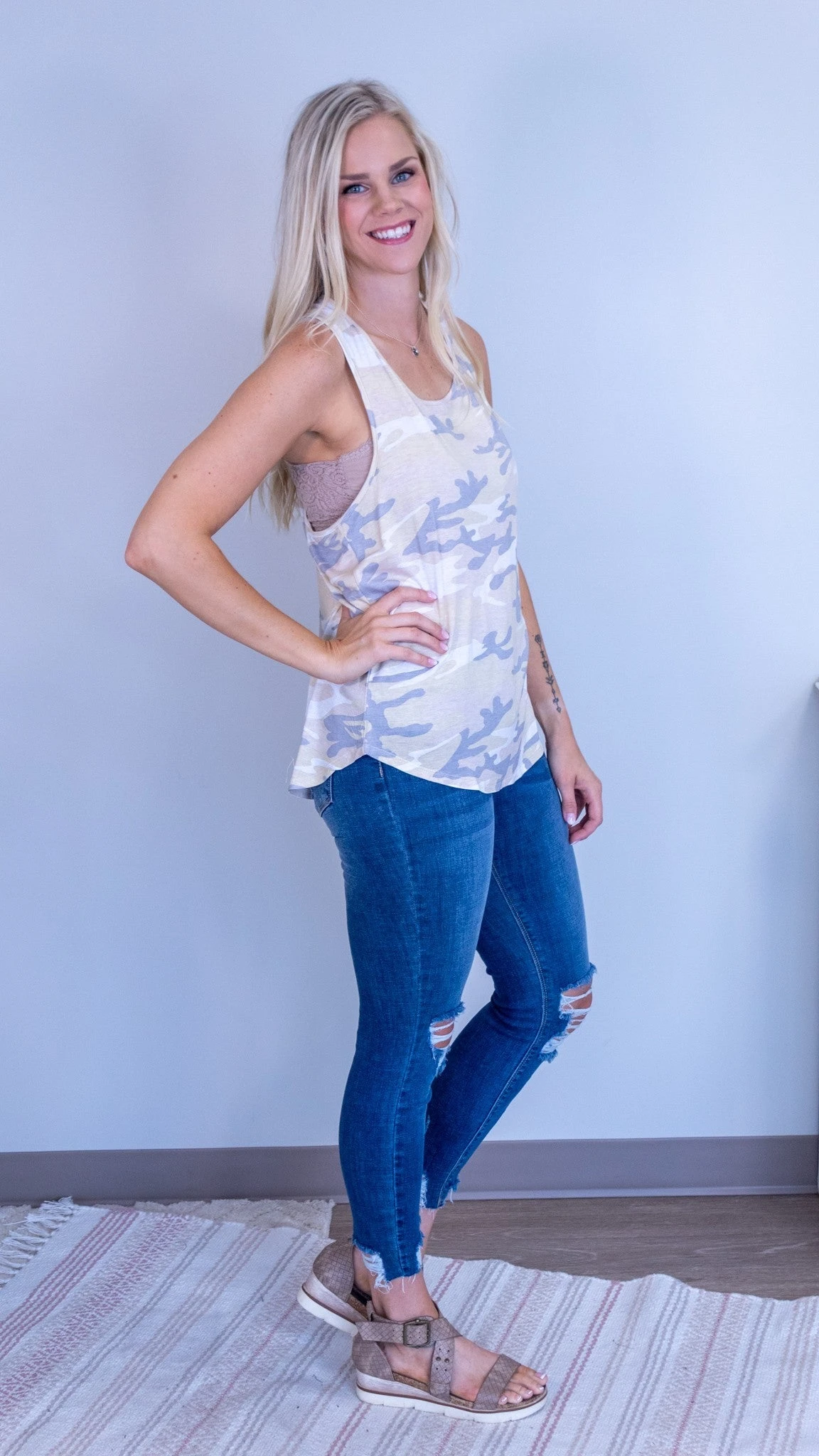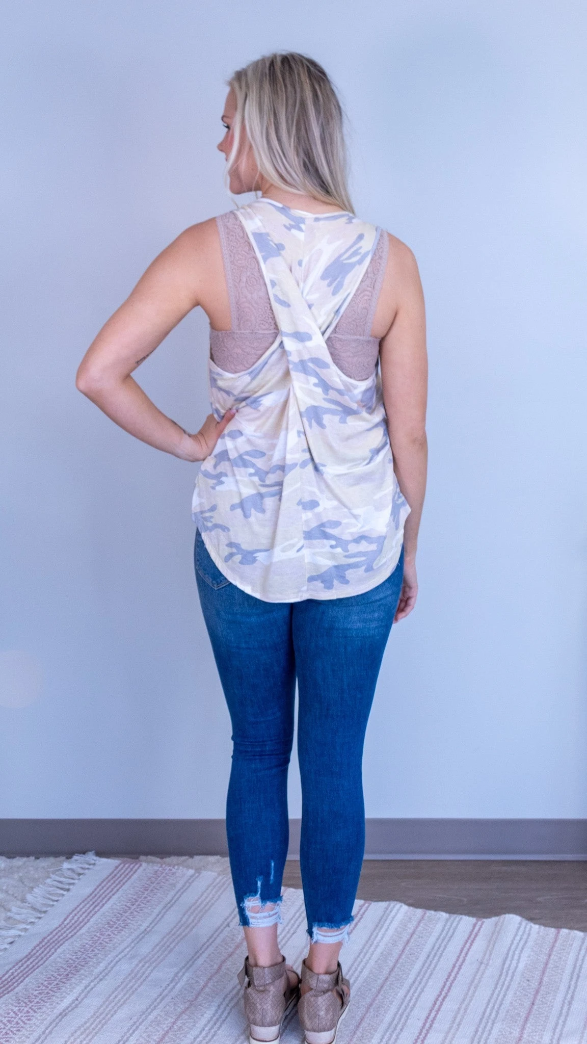 We can not get enough of the Just A Girl In Charge Camouflage Top!! We absolutely LOVE the color of the camo print and the criss cross back detail! How can you say no to this one?!?