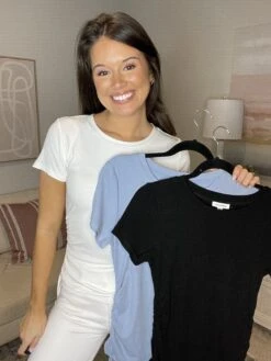 The “Just For Me Top” has arrived! This short sleeve top is a must have! The perfect addition to your collection of closet staples, the possibilities here are endless! Snag one before they are gone!