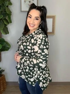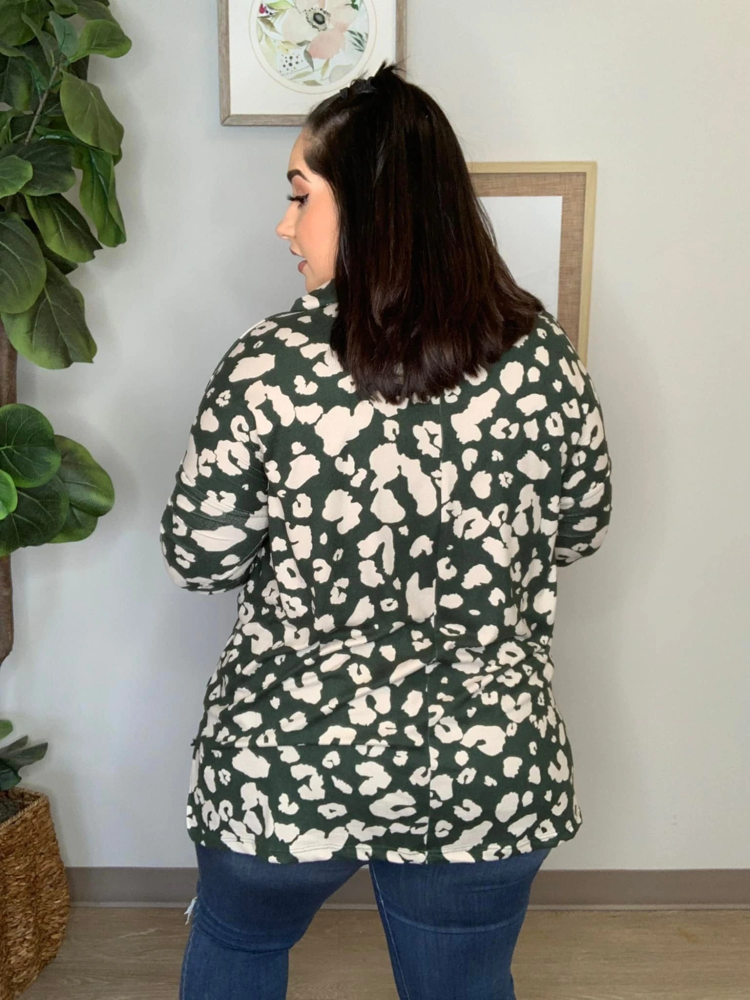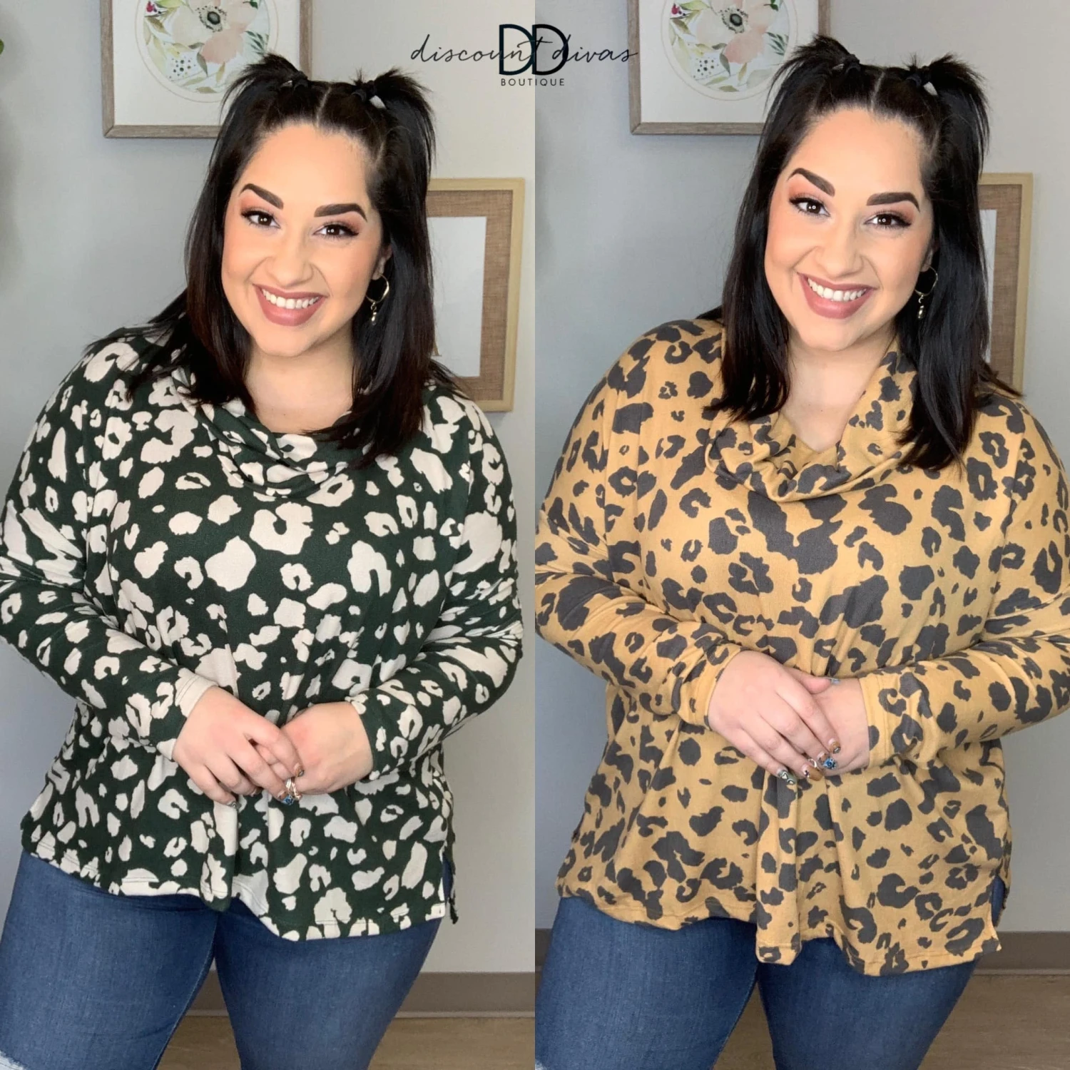 The “Keep Going Top” has arrived! This leopard print top is a must have! With a cowl neck, this top is simply stylish! Pair with black denim and faux leather boots for the perfect look!