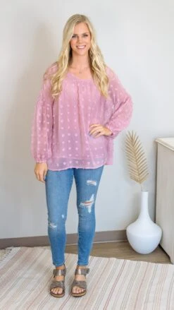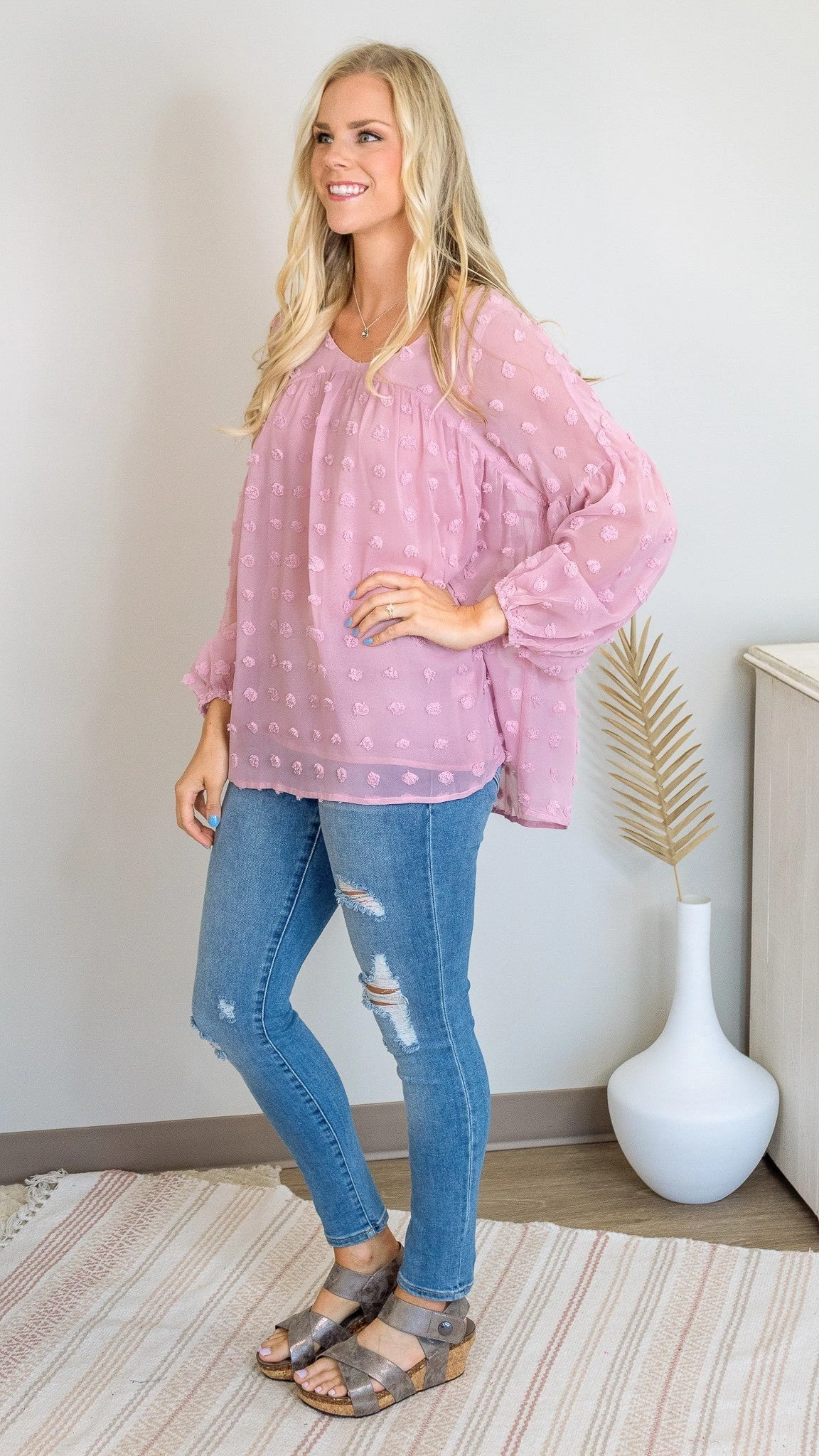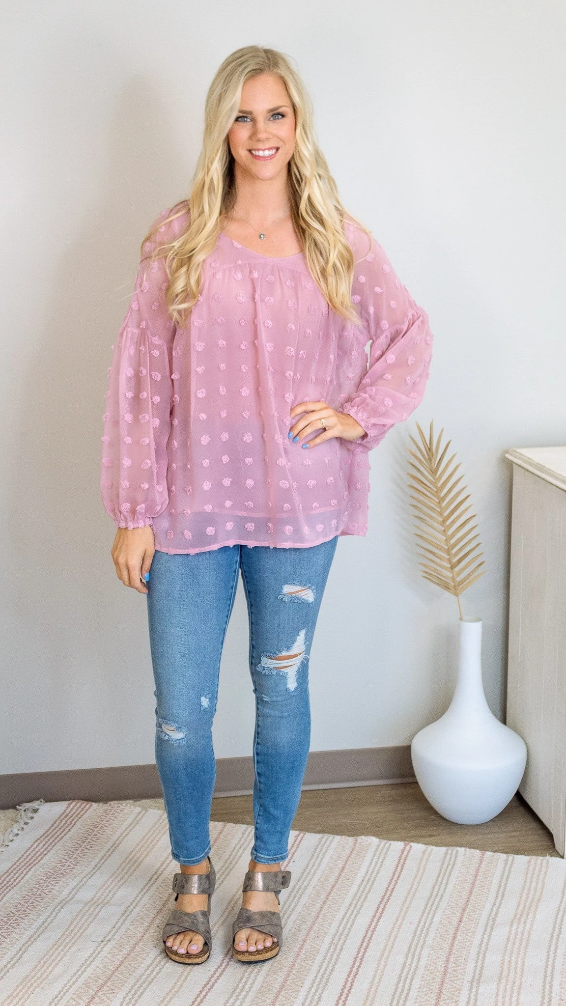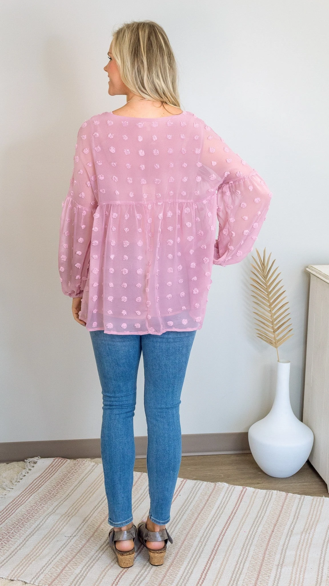 The Key To Success Top is STUNNING!! This chiffon top has a V neckline and pom pom polka dots. Dress this shirt up or down. Which color will you choose?!