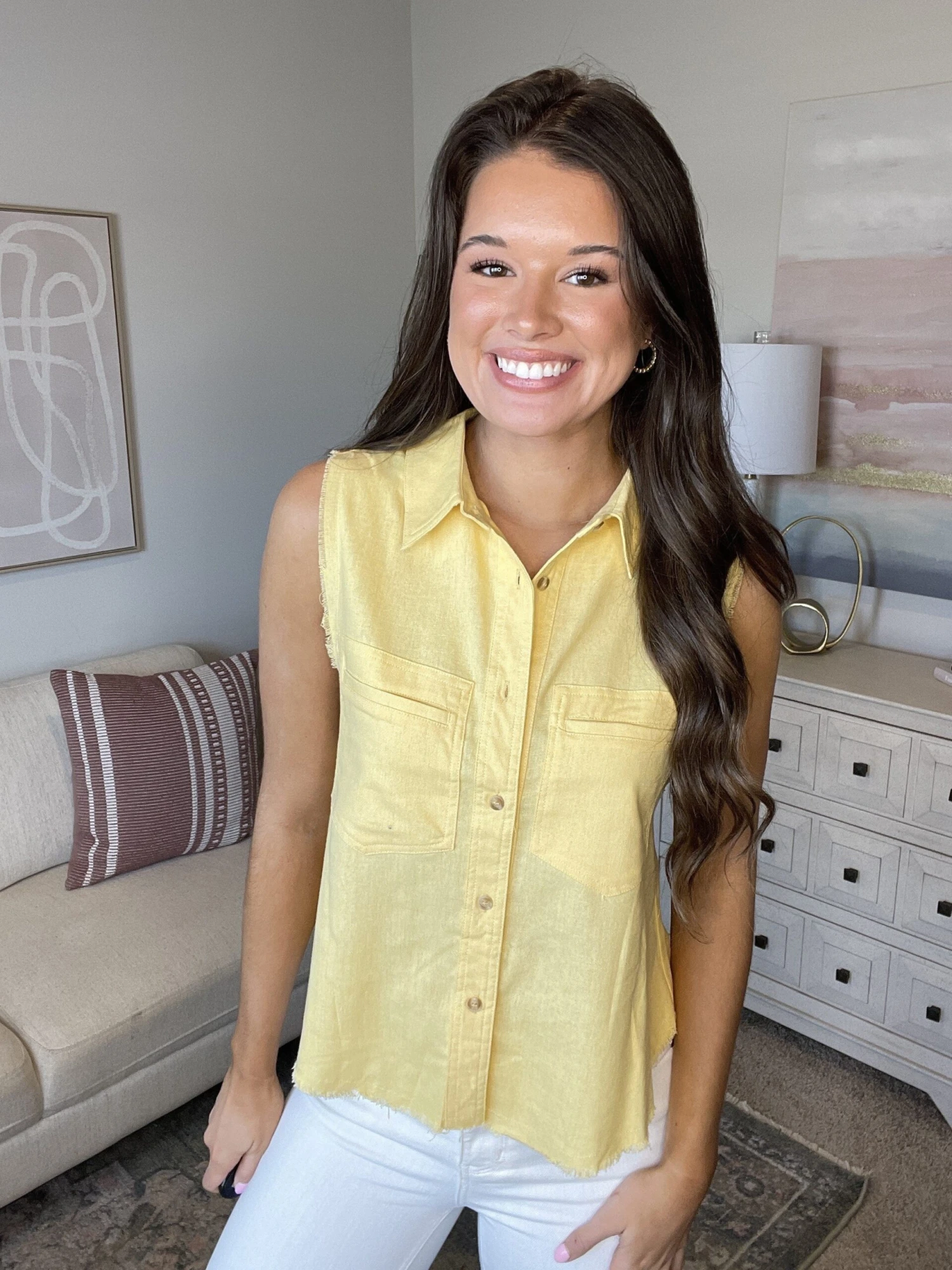 Features: Collar, Sleeveless, Chest Pockets, Button Down