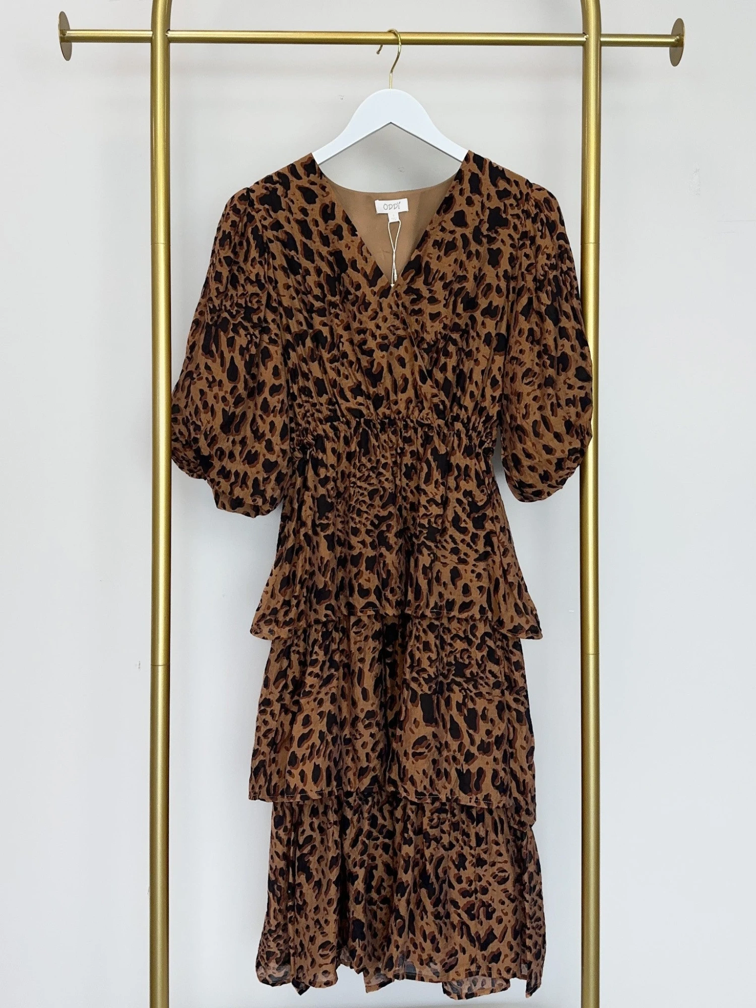 This gorgeous dress combines fierce leopard print with ruffles for a look that is bold and beautiful! You’ll be sure to turn heads with this look!
