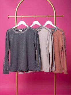 This cozy pullover features a leopard print trim for a fierce touch of style! The perfect choice for casual outings or lounging around! Embrace your wild side and snag today!