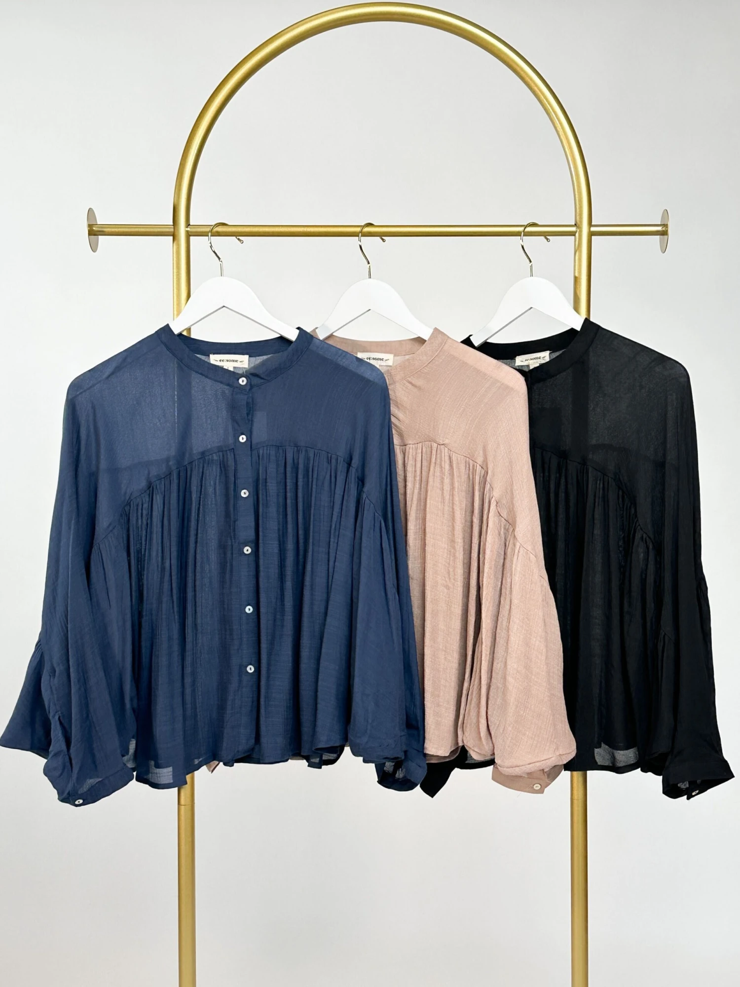 Features: Long Dolman Sleeves, Round Neck, Button Down