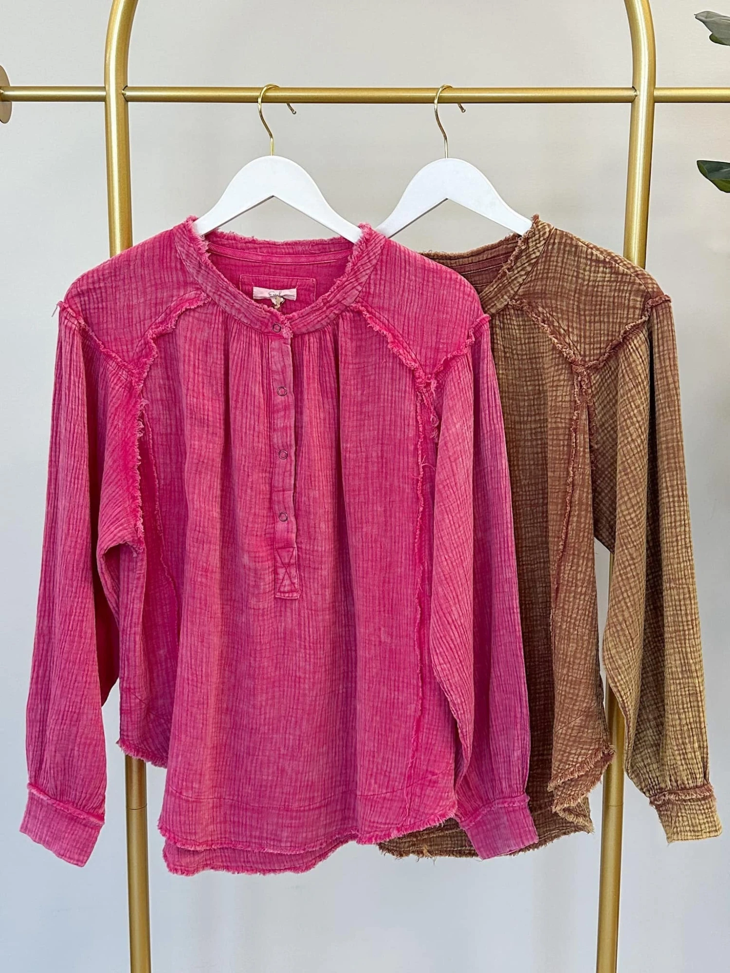 This mineral washed cotton gauze moment is just what you need in your closet! We are obsessed with this style and the colors! Don’t miss out on this look!