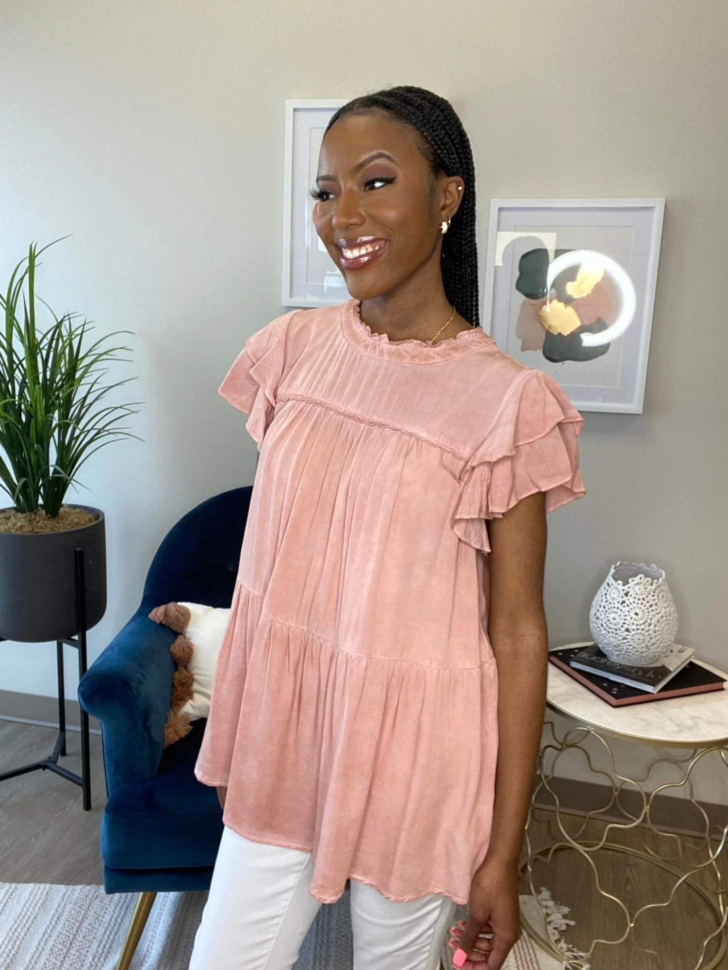 The “Love Me Back Top” has arrived! This light-wash top is a must have! With ruffle details and a keyhole summary in the back, this one is sweet and stylish! Perfect for spring, snag one before its too late!