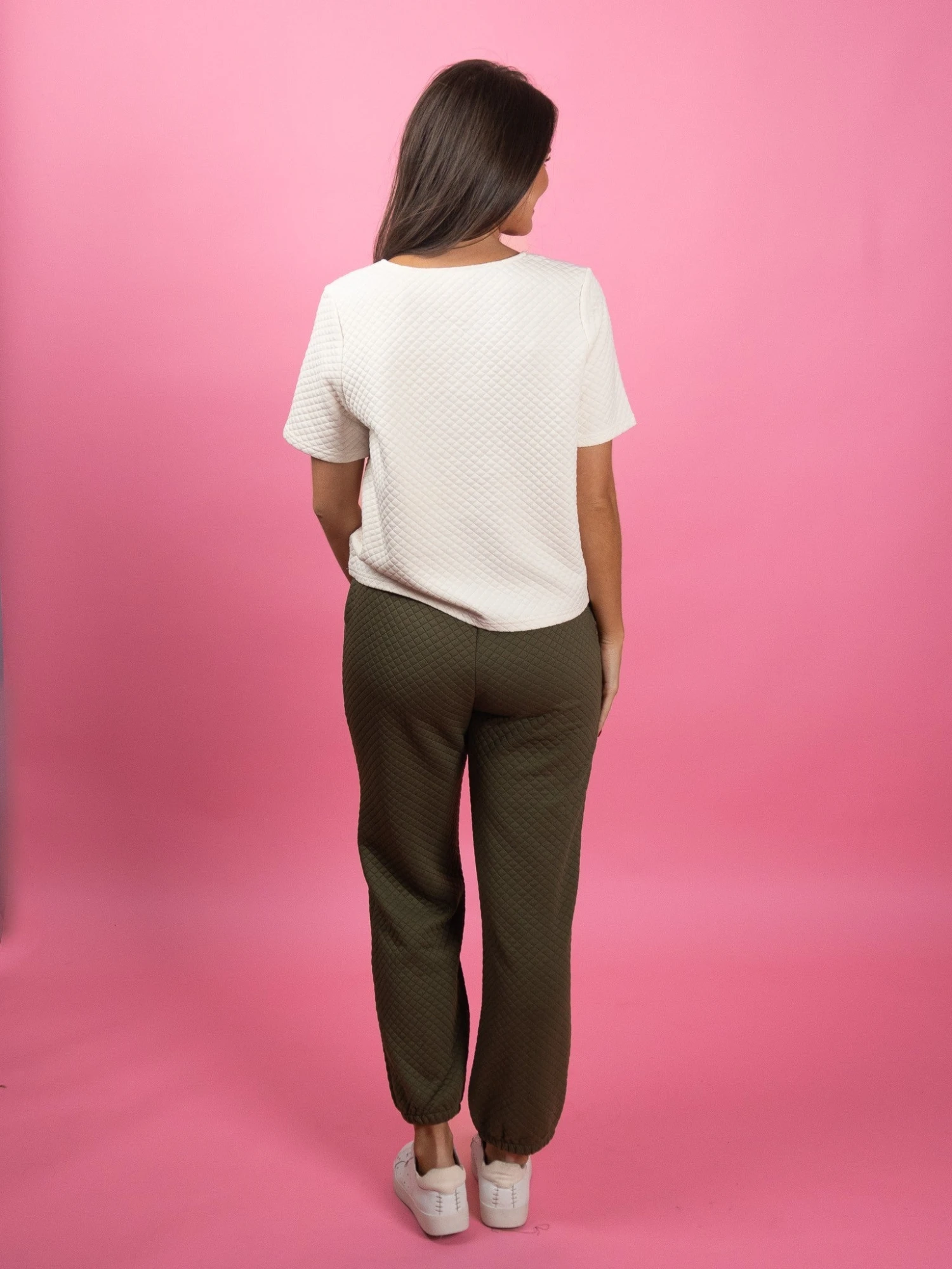 The quilted pattern adds the perfect amount of interest to this must-have! This top is so comfy and cozy, perfect for lounging in style!