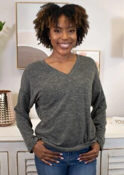 Divas, the Madeline Top is a fall staple that every lady needs in their wardrobe. It comes in three colors, all that are perfect for fall! It has a v-neck and a super cute back tie! We paired ours with denim and booties, how will you wear yours?