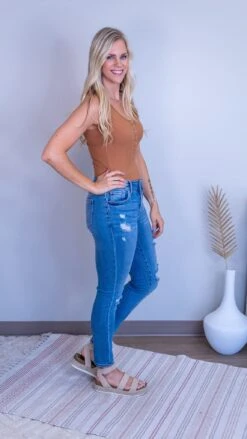 Main Reason Bodysuit is what every woman needs in their closet. You can do so many things with this piece. You can add a cardigan, pair it with some cute blue jean shorts, or even just wear the bodysuit to show off your sassy side!