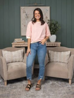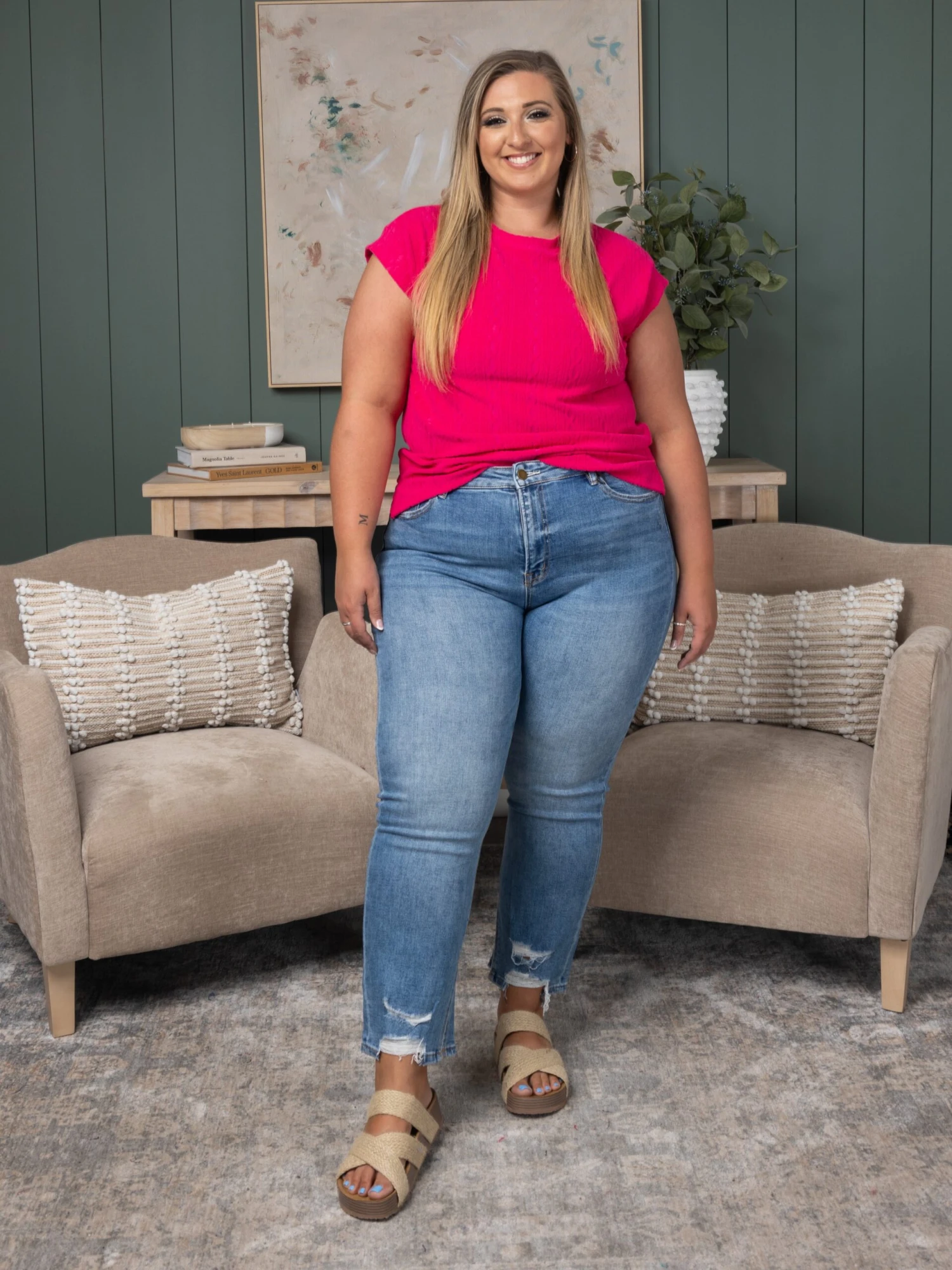 Erin is 5’8, 36C bra, typically wears size L/XL in tops and 14/16 in denim. Wearing size 15