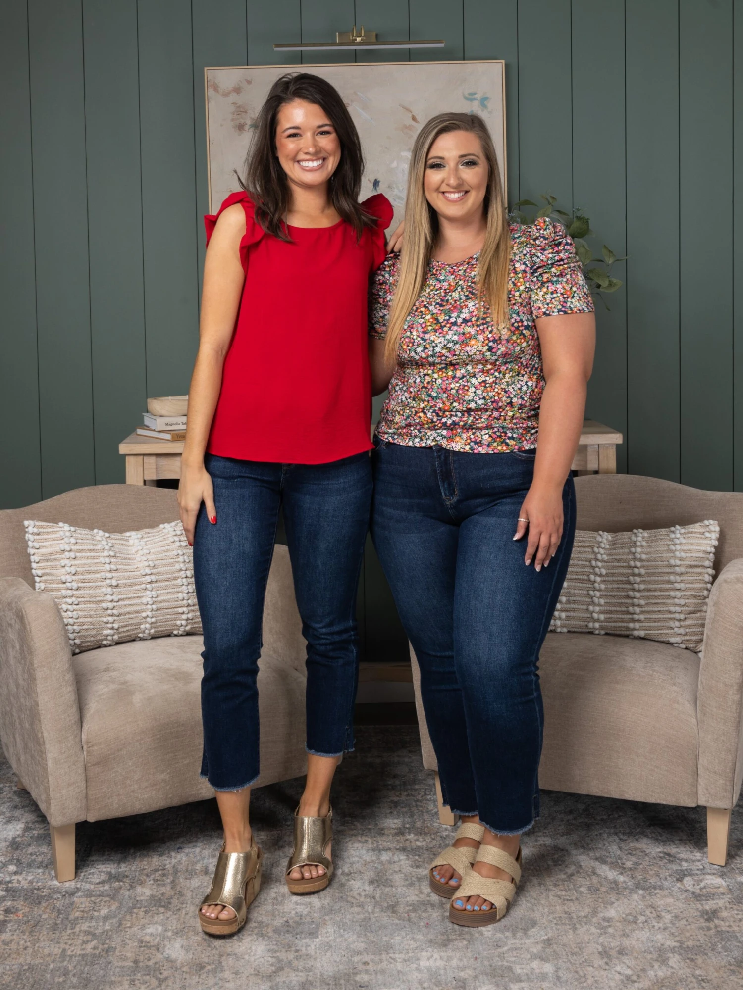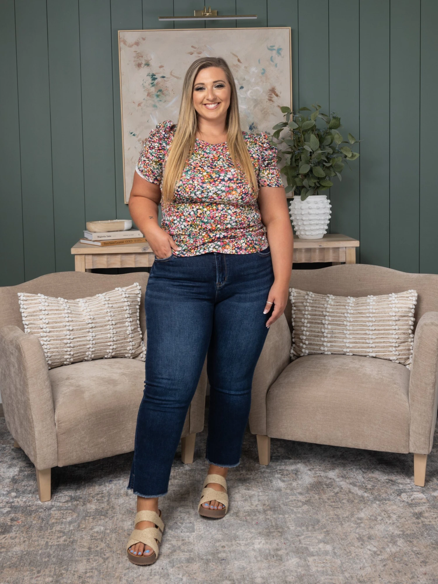 Erin is 5’8, 36C bra, typically wears size L/XL in tops and 14/16 in denim. Wearing size 15