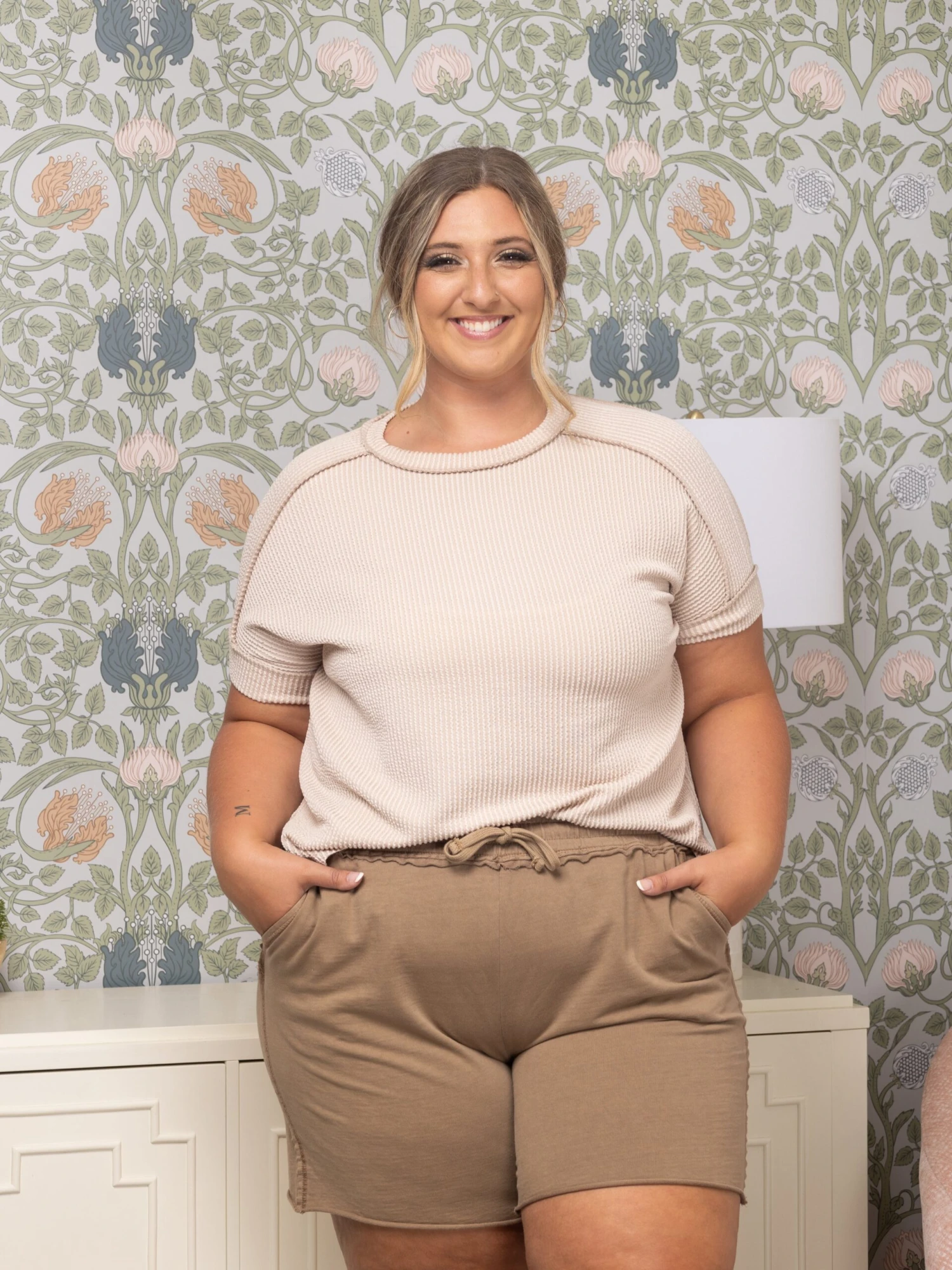 Erin is 5’9, 36C bra, typically wears size L/XL in tops and 14/16 in denim. Wearing size L