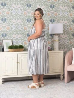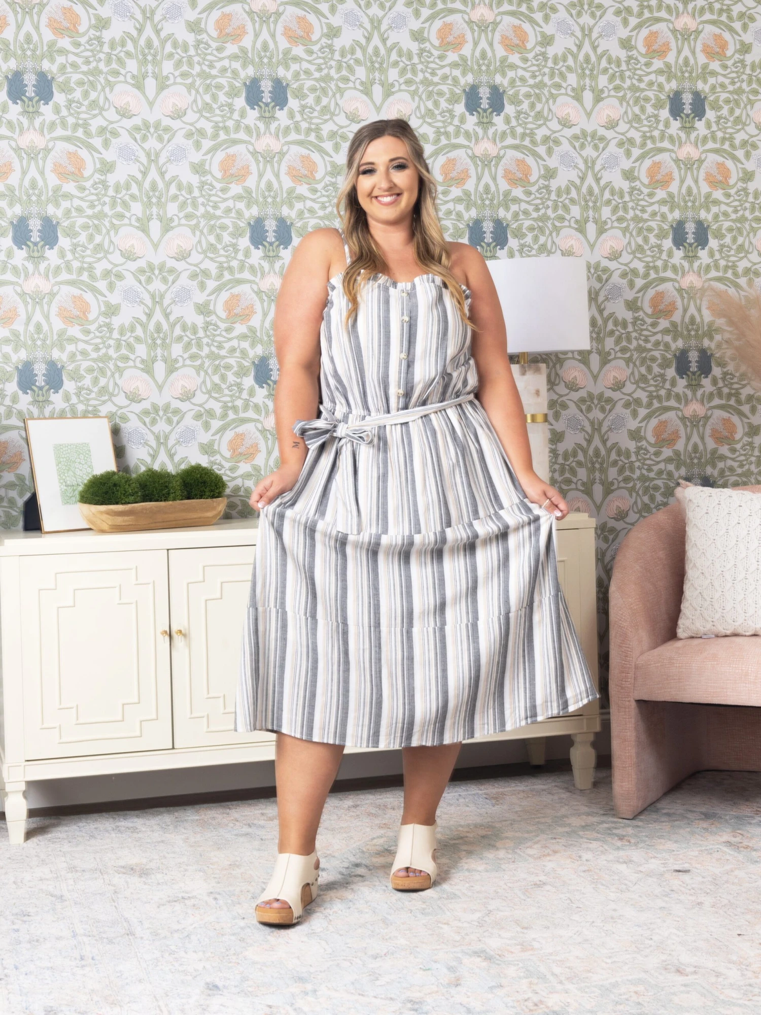 Features: Midi dress, Ruffle, Waist Tie