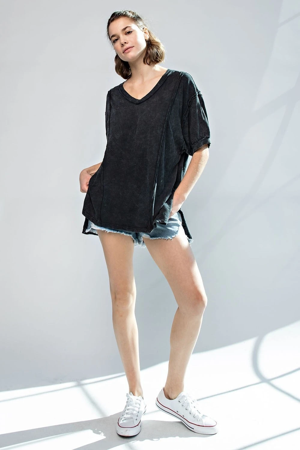 Features: V-Neck, Puff Sleeves, Short Sleeves