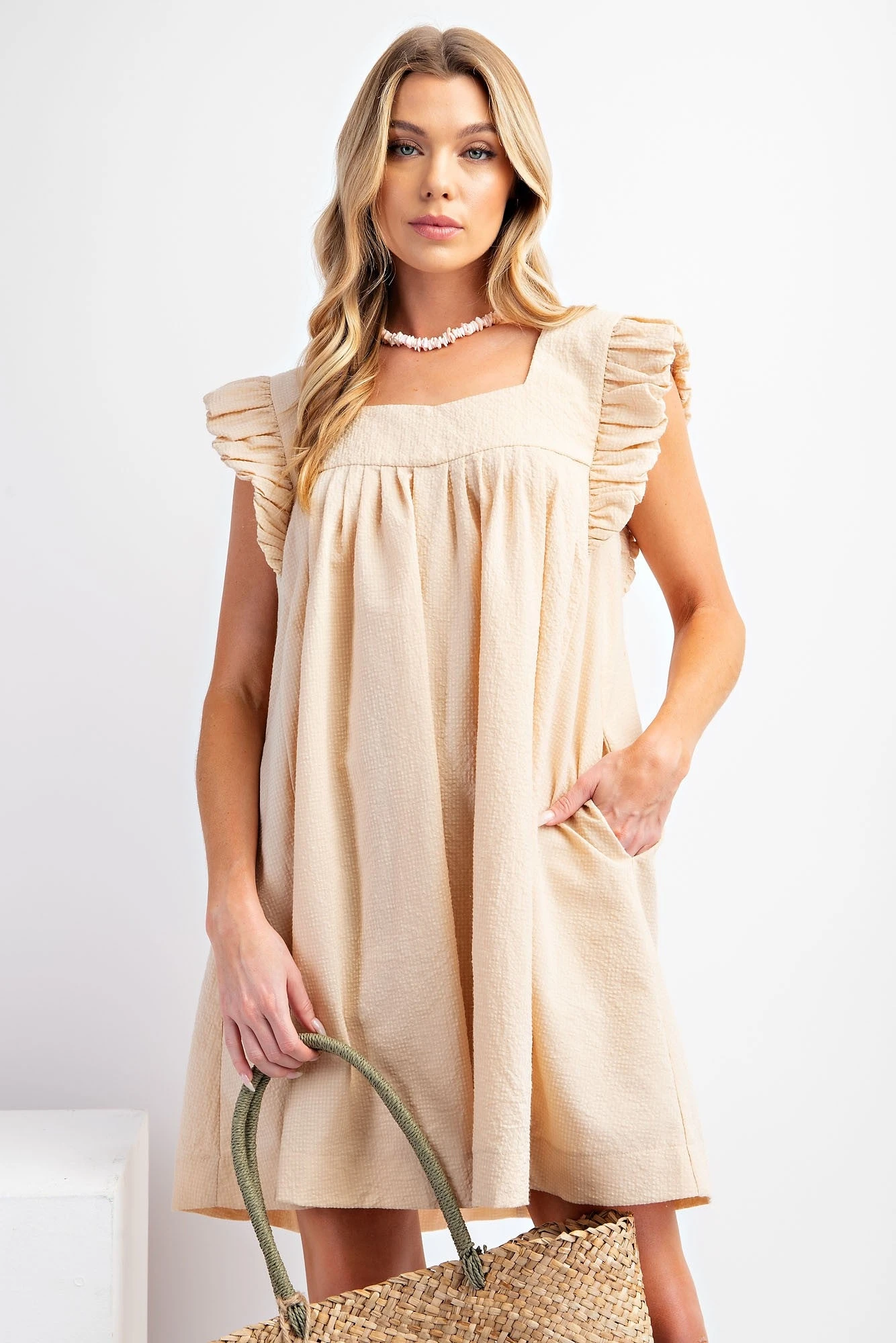 Features: Square Neck, Ruffle Sleeves, Pockets