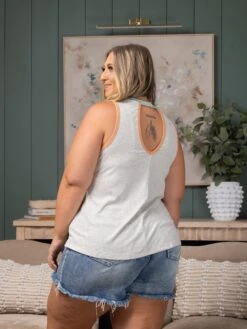 Erin is 5’8, 36C bra, typically wears size L/XL in tops and 14/16 in denim. Wearing size L
