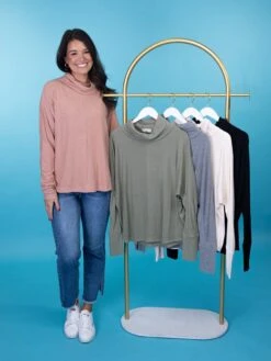 This chic top features a trendy mock neck and relaxed dolman sleeves, creating a stylish and cozy look! Effortlessly elevate your everyday look with this must-have piece!