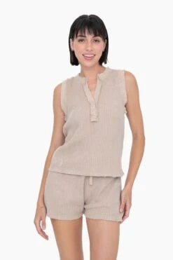 Features:V-Neck, Buttons, Waffle Texture