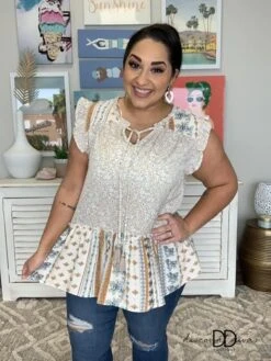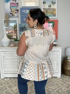 The “Morning Convos Top” has arrived! This adorable mixed print is everything! We are living for the ruffled sleeveless look! Don’t miss out! Be sure to snag one before they are gone!