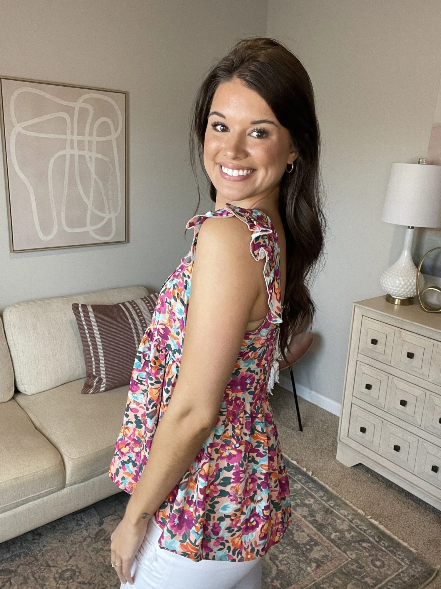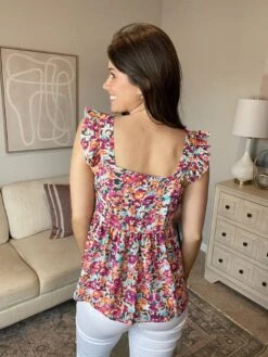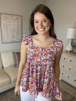 Features: Square Neck, Ruffle Sleeves, Button Detail