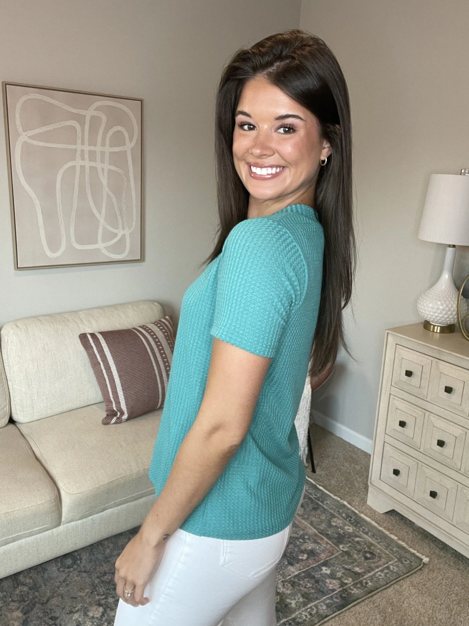 Have you seen the “Of Importance Top” yet? This short sleeve design is just what you need in your summer wardrobe! With a waffle knit design and bright colors, you know you don’t want to miss out! Snag one today!