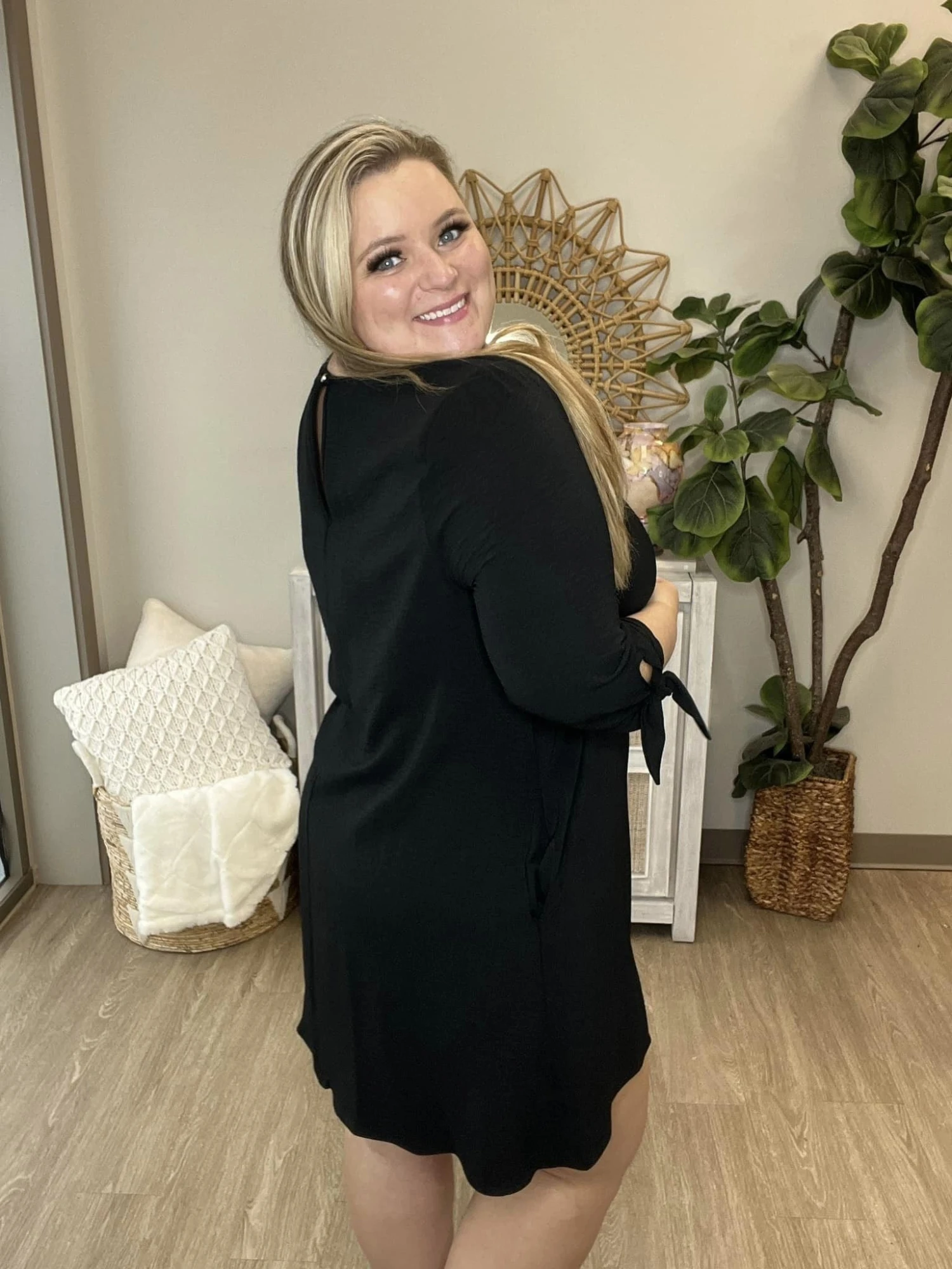 The “Old Ties Dress” is here for you! This round neck dress is so flattering! With tie details, this one is subtle but stylish! Pair with some tall boots for the perfect winter time look! Snag one before they are all gone!