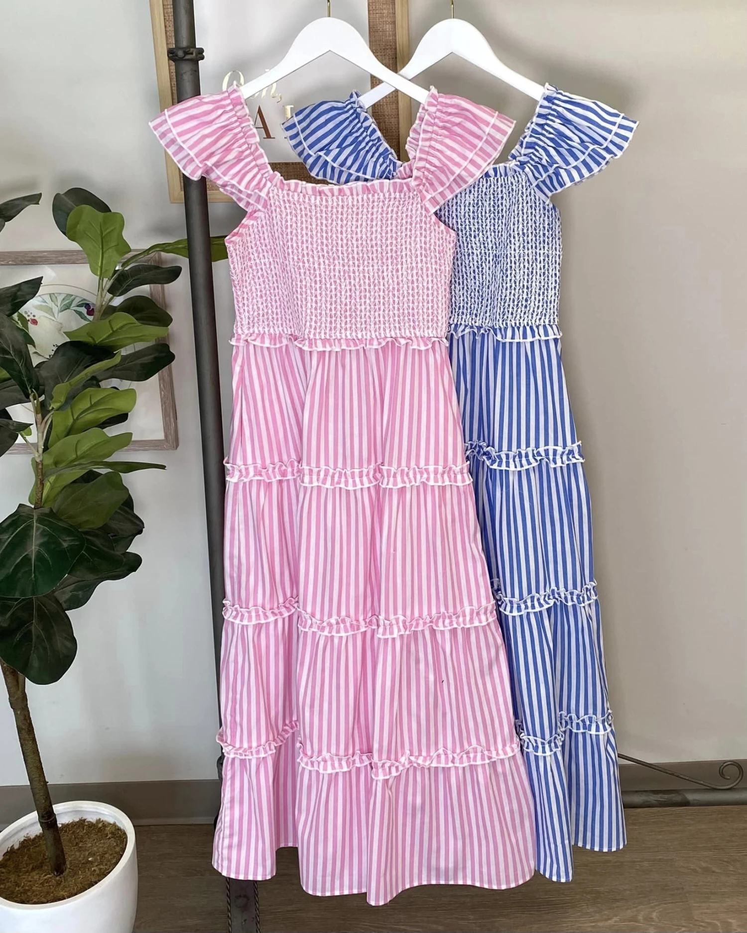 The “Olivia Dress” is just what you need in your life! The tiered look with the smocked bust is so flattering! The stripes are adorable! Snag one today before they’re gone!