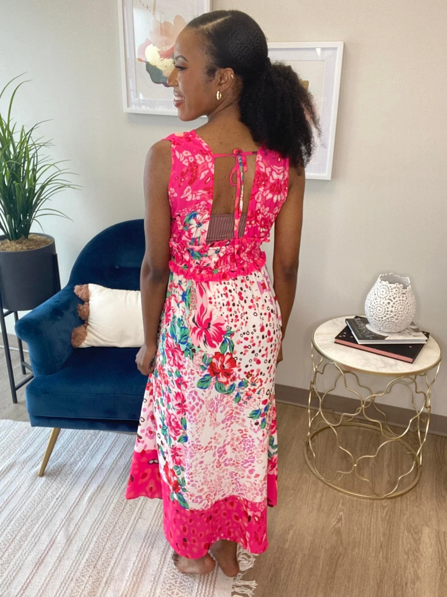 The “Organized Mood Dress” has arrived! This super cute floral print maxi dress is just what you need! We are loving the back tie! Be sure to snag one before they sell out!