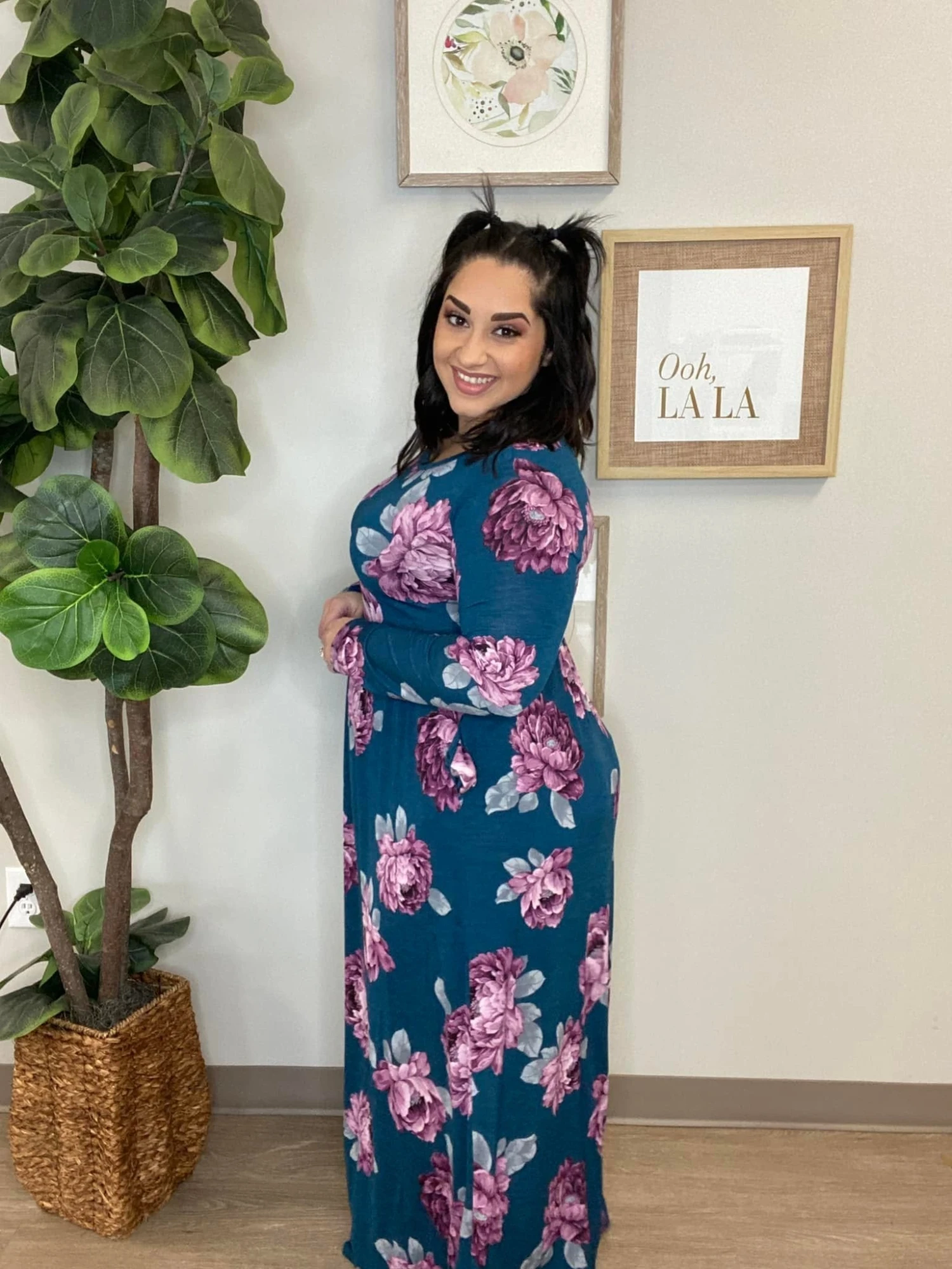 The “Out Of The Blue Dress” has arrived! This floral print maxi dress is a must have! Perfect for any season, don’t miss out here! Pair with sandals or boots, the possibilities are endless!