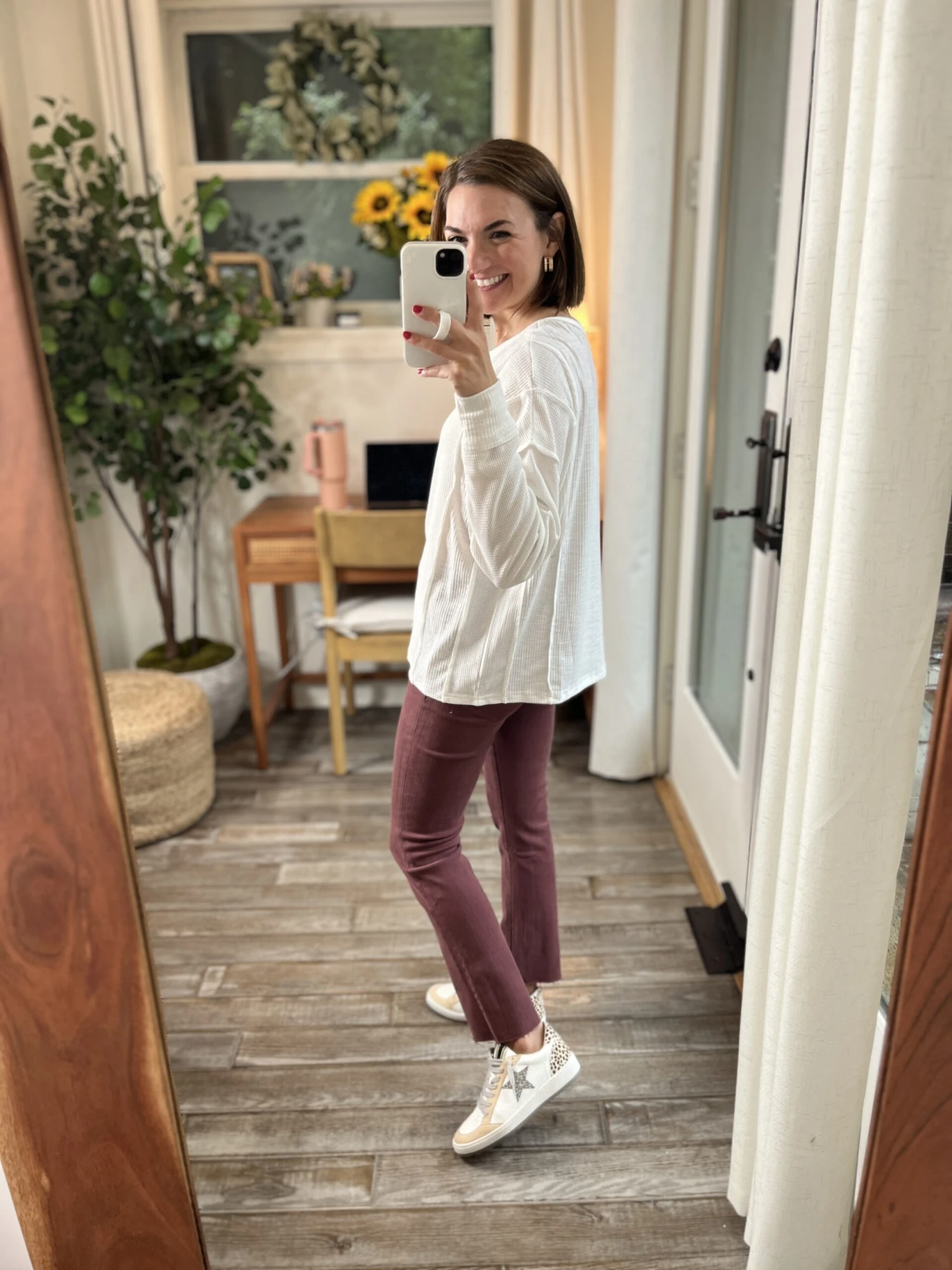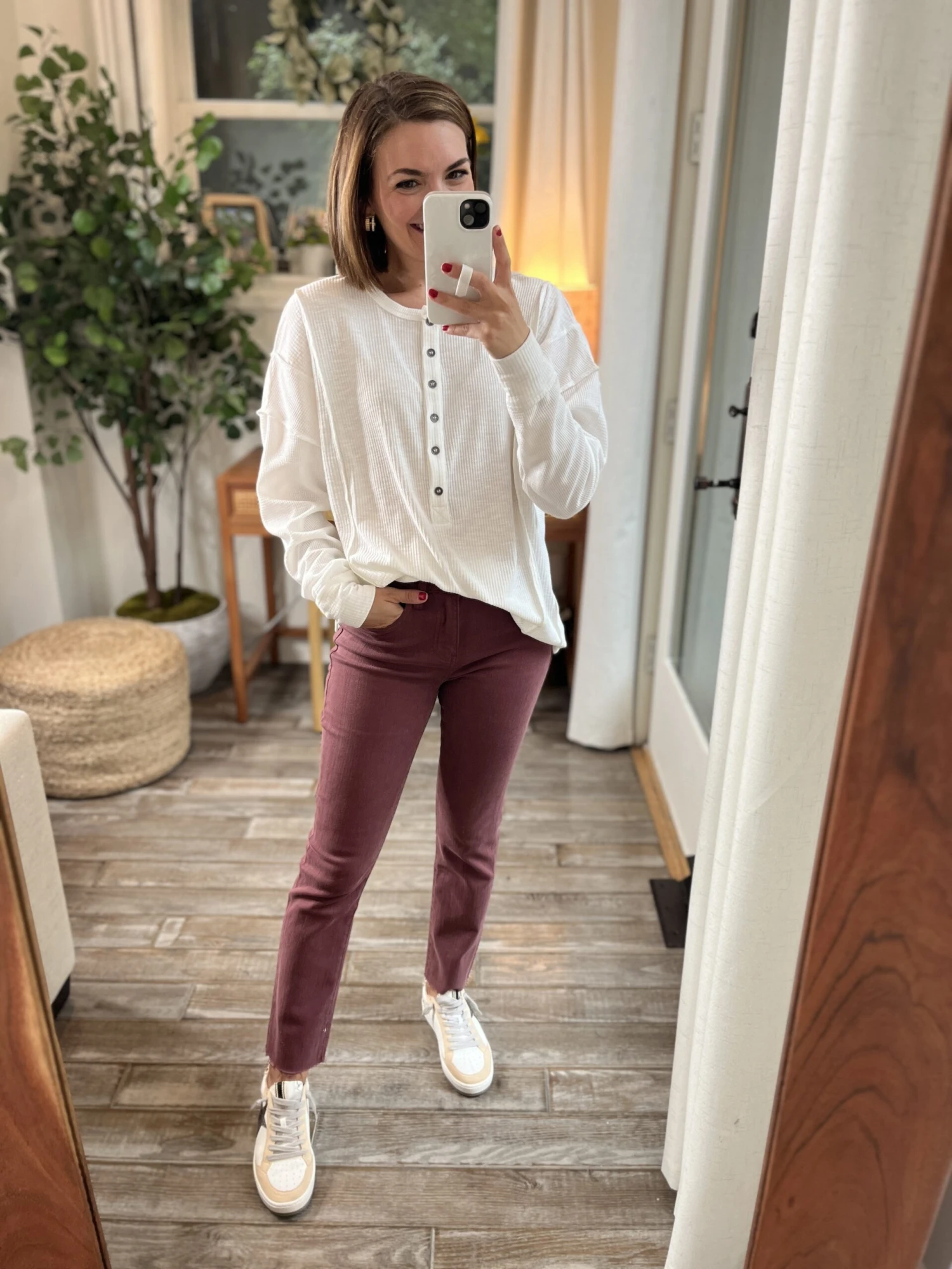 Materials: 59.8% Polyester 32.2% Cotton 8% Spandex