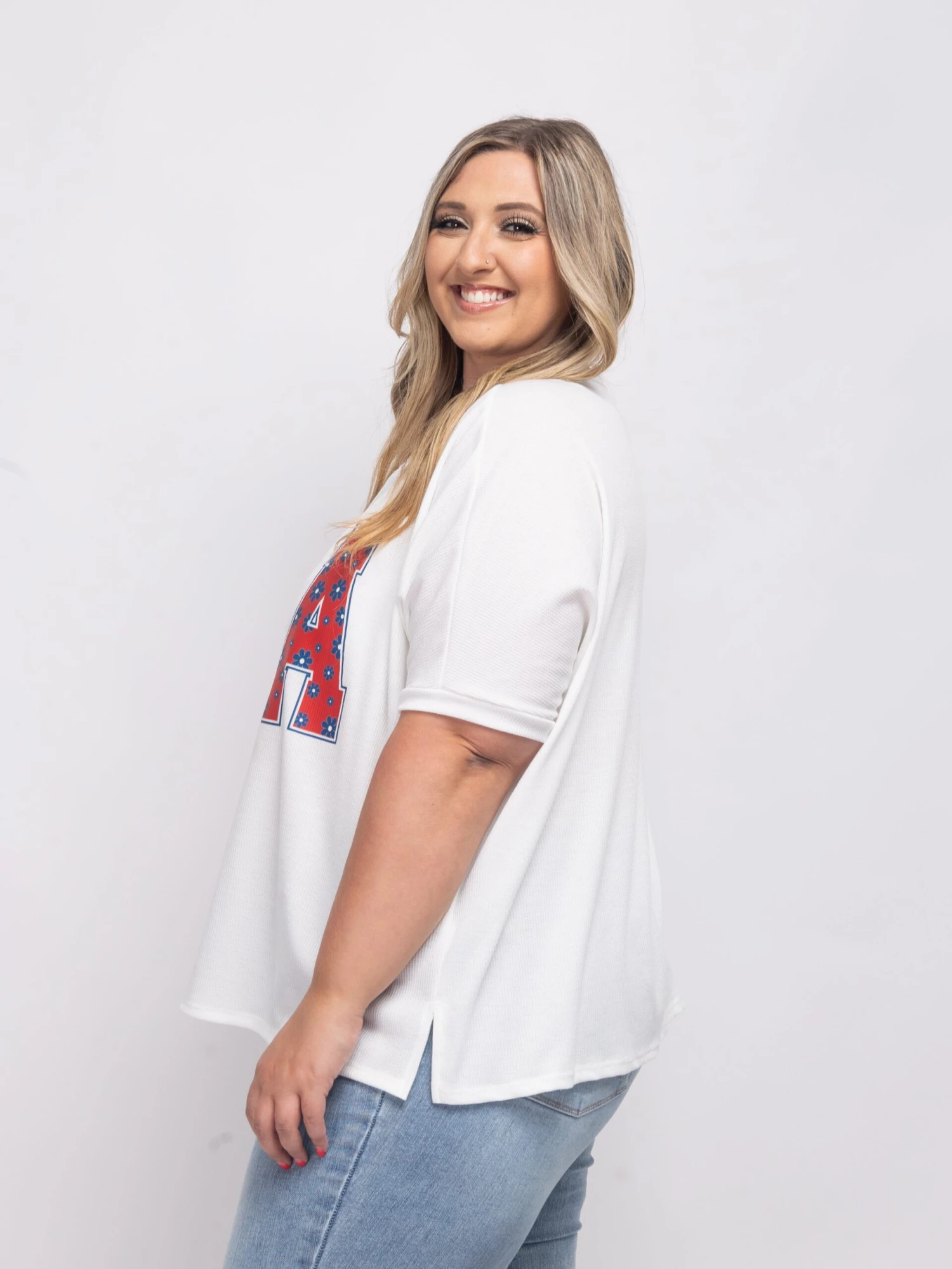 Features:USA Graphic, Oversized, Dolman Sleeves