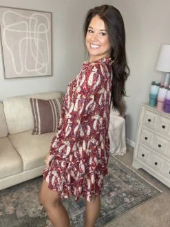 Features: Split Neck with Tassel, Long Sleeves, Printed