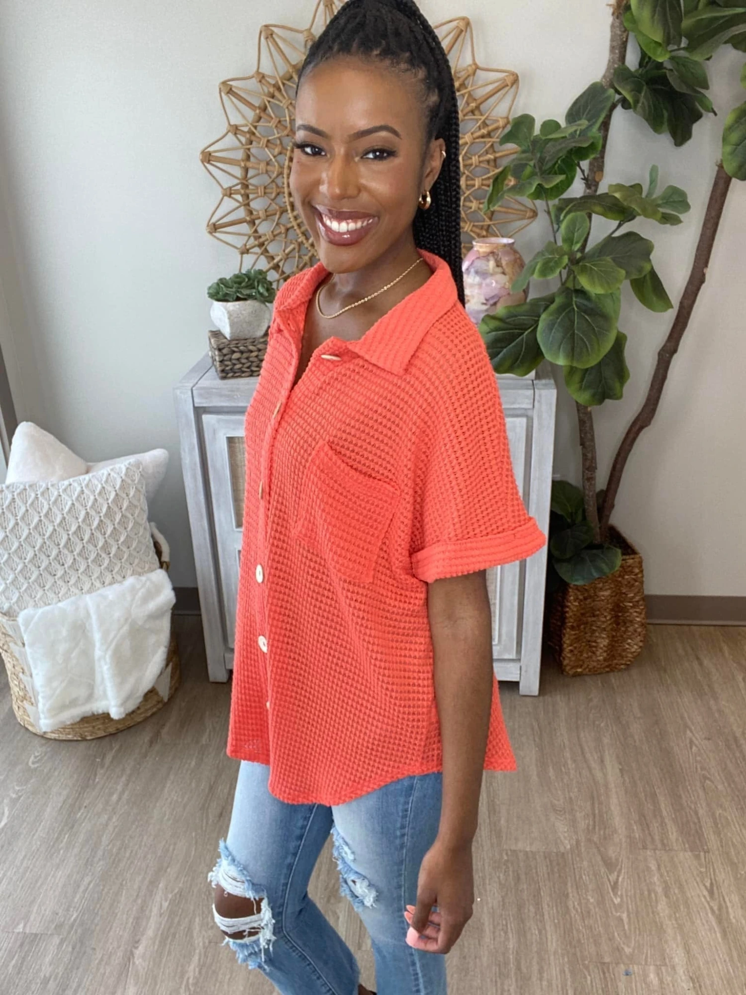 The “Pretty Lady Top” has arrived! This waffle print shirt is calling your name! Beautifully bold colors perfect for the summer make this one a must have! So stylish, you cannot go wrong here! Snag one today!
