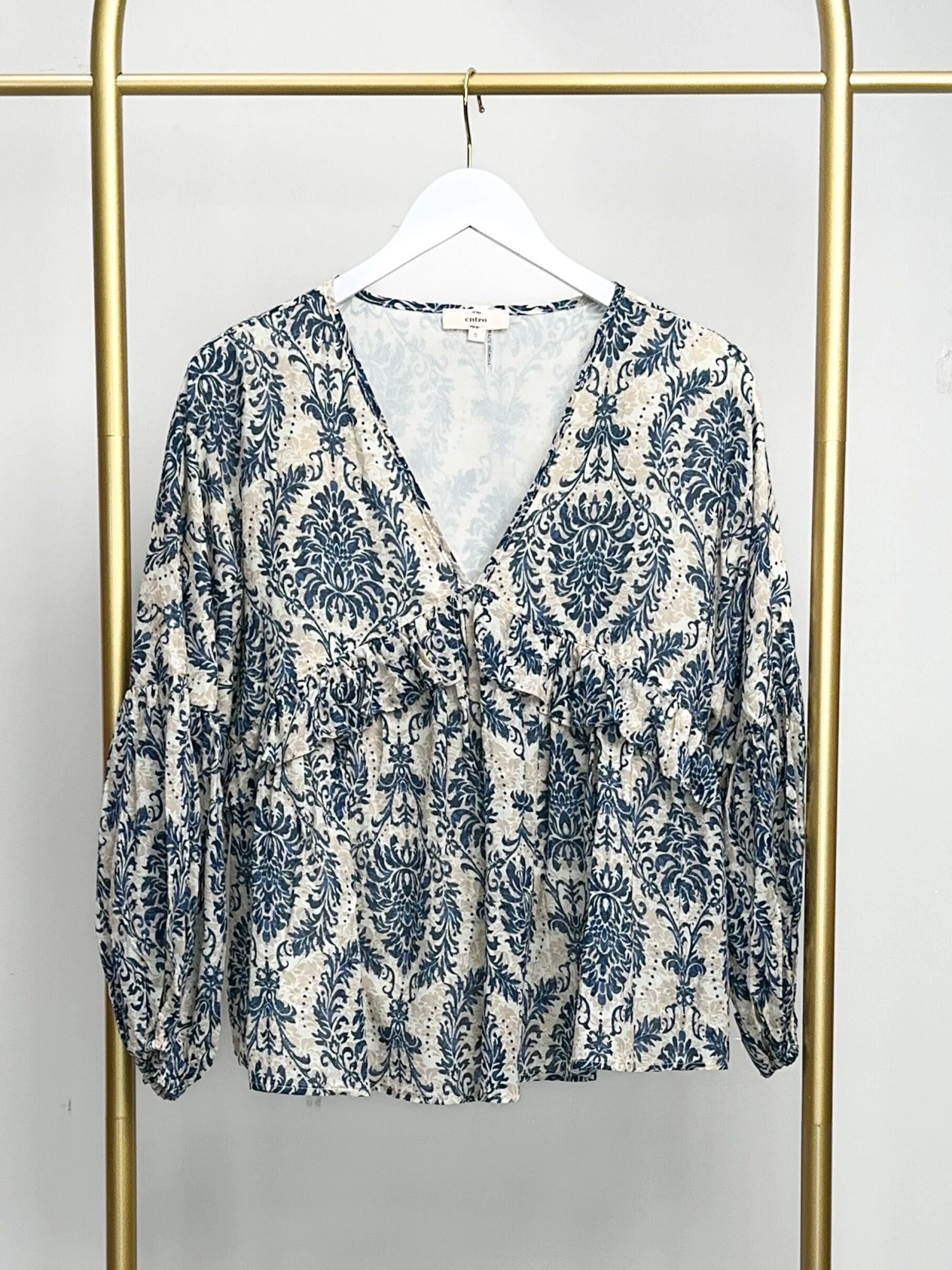 Features: V-Neck , Long Sleeve, Balloon Sleeve, Print