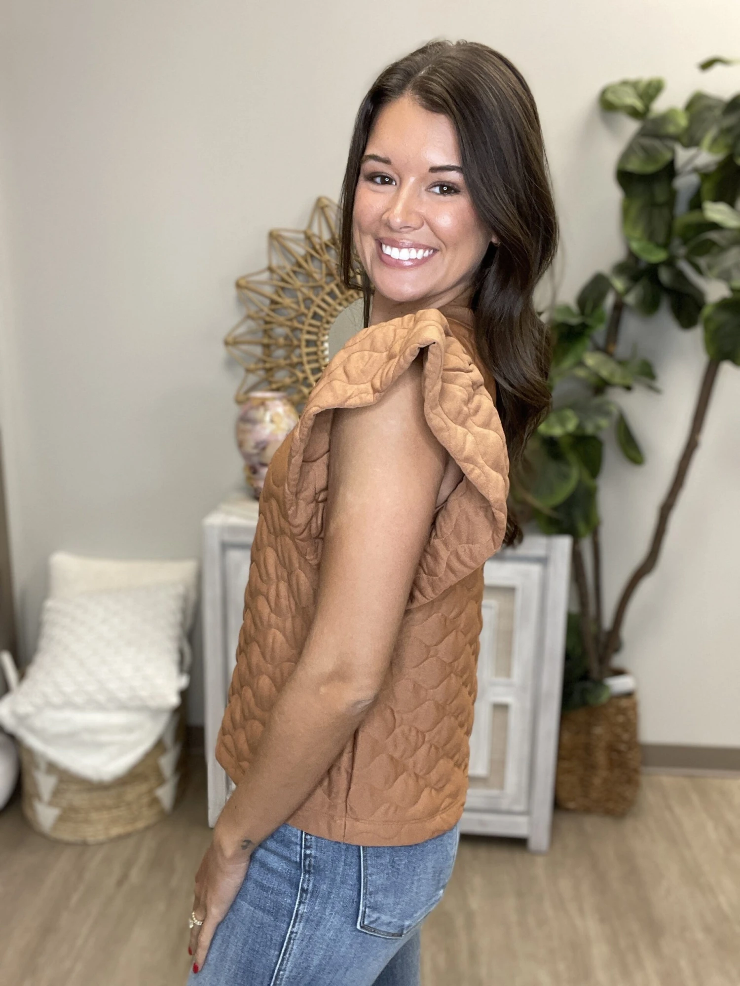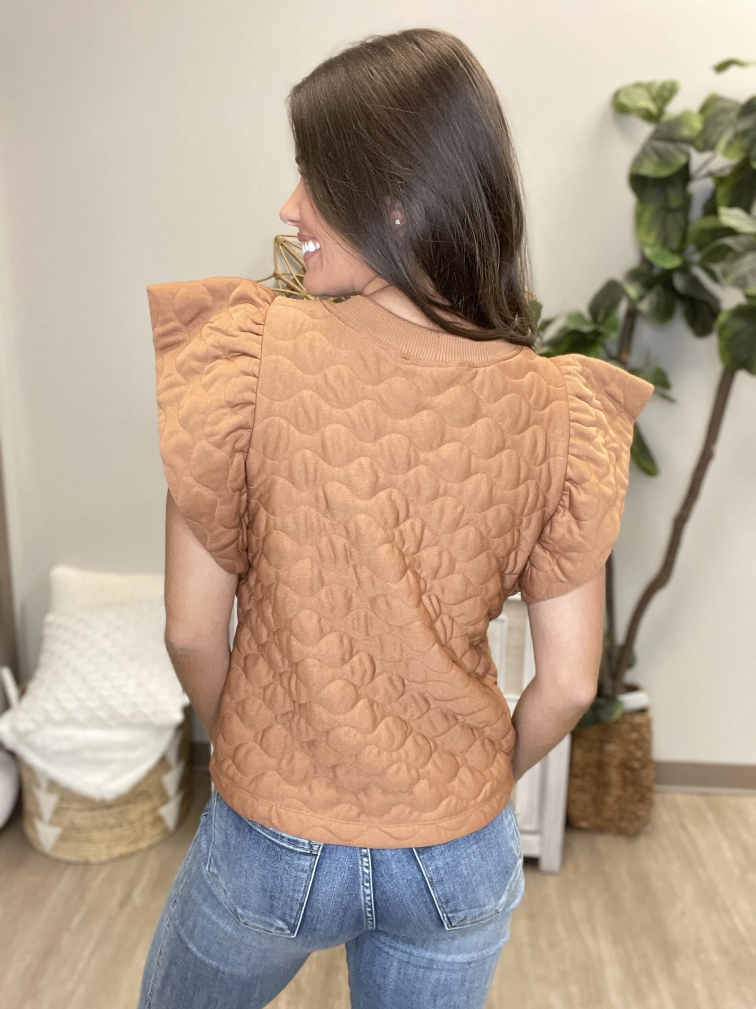 Features: Quilted, Ruffle Sleeves, Short Sleeves