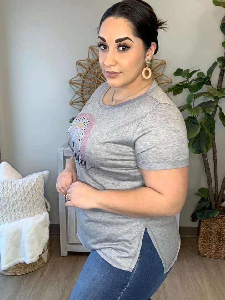 The “Rainbow Mama Top” has arrived! This graphic tee is calling your name! Perfect for all the Mamas out there, you know you need this one! Pair with denim or shorts, the possibilities are endless! Snag one before they are gone!
