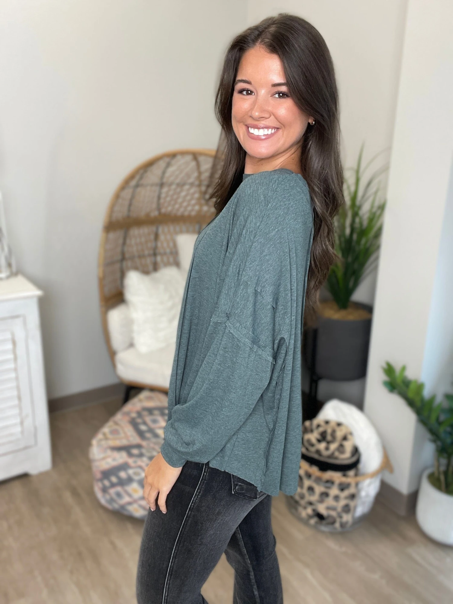 -Features: Long Sleeves, Round Neck, Oversized, Raw Hem