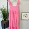 Features: Round Neck, Sleeveless, Floral Print Detail, Solid Maxi, Side Slit, Side Pockets