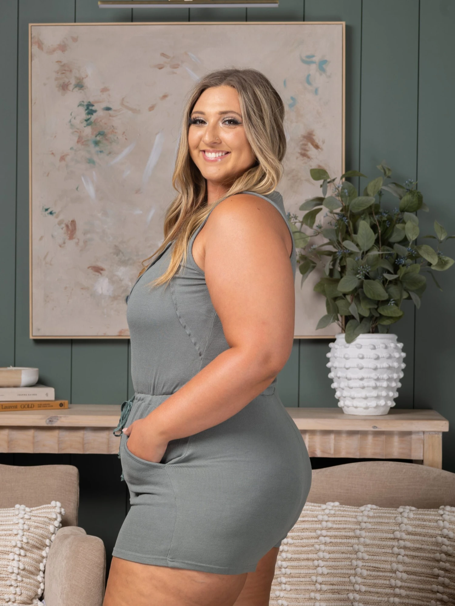 Features: Sleeveless, Round summary Neck, Side Pocket, Elastic Waist with Tie