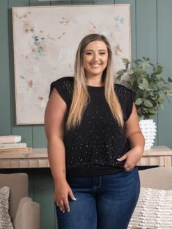 Features: Sleeveless, Round Neck, Rhinestones, Shoulder Pads