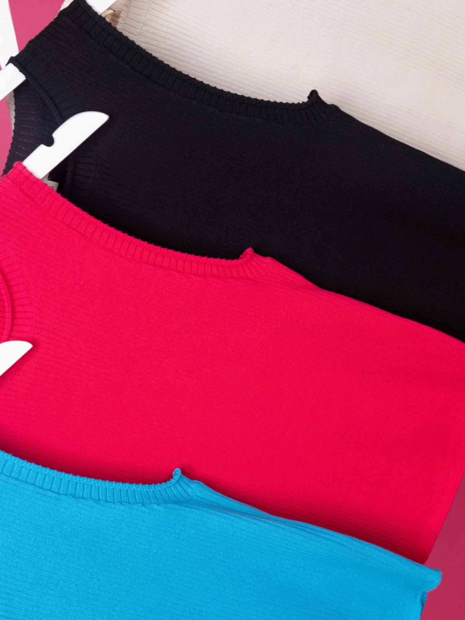 Features: Soft ribbed sleeveless silhouette tank top with crew neckline and rolled hem.