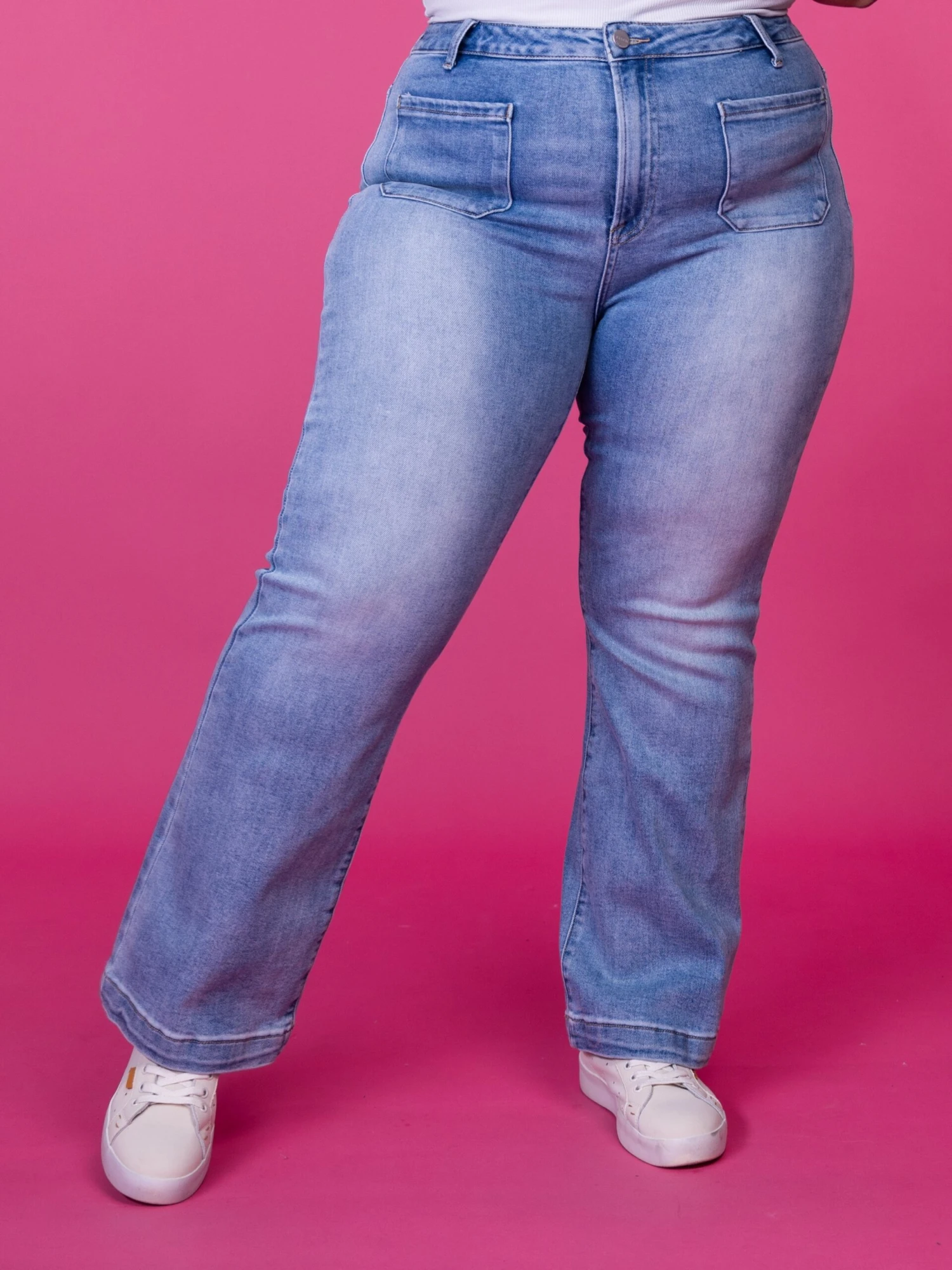 These chic and versatile jeans feature a high-rise silhouette and patch pockets for a trendy twist! Whether you’re dressing up or down, this cute look is the perfect addition to your wardrobe!