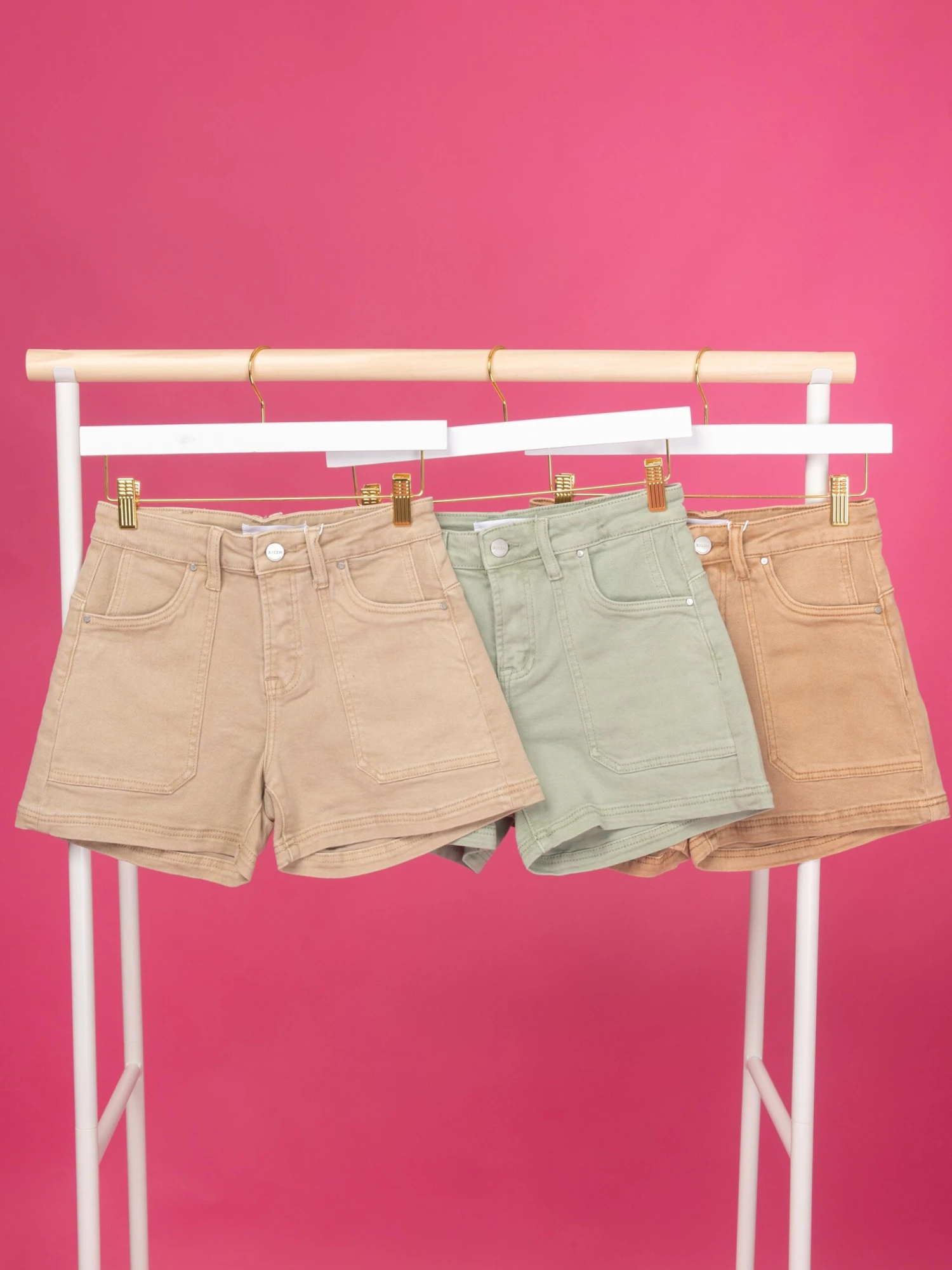 Features: Button Waist, Pockets, Solid Bottom