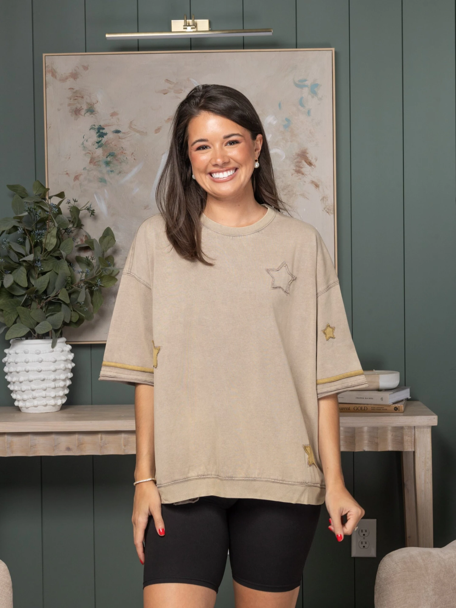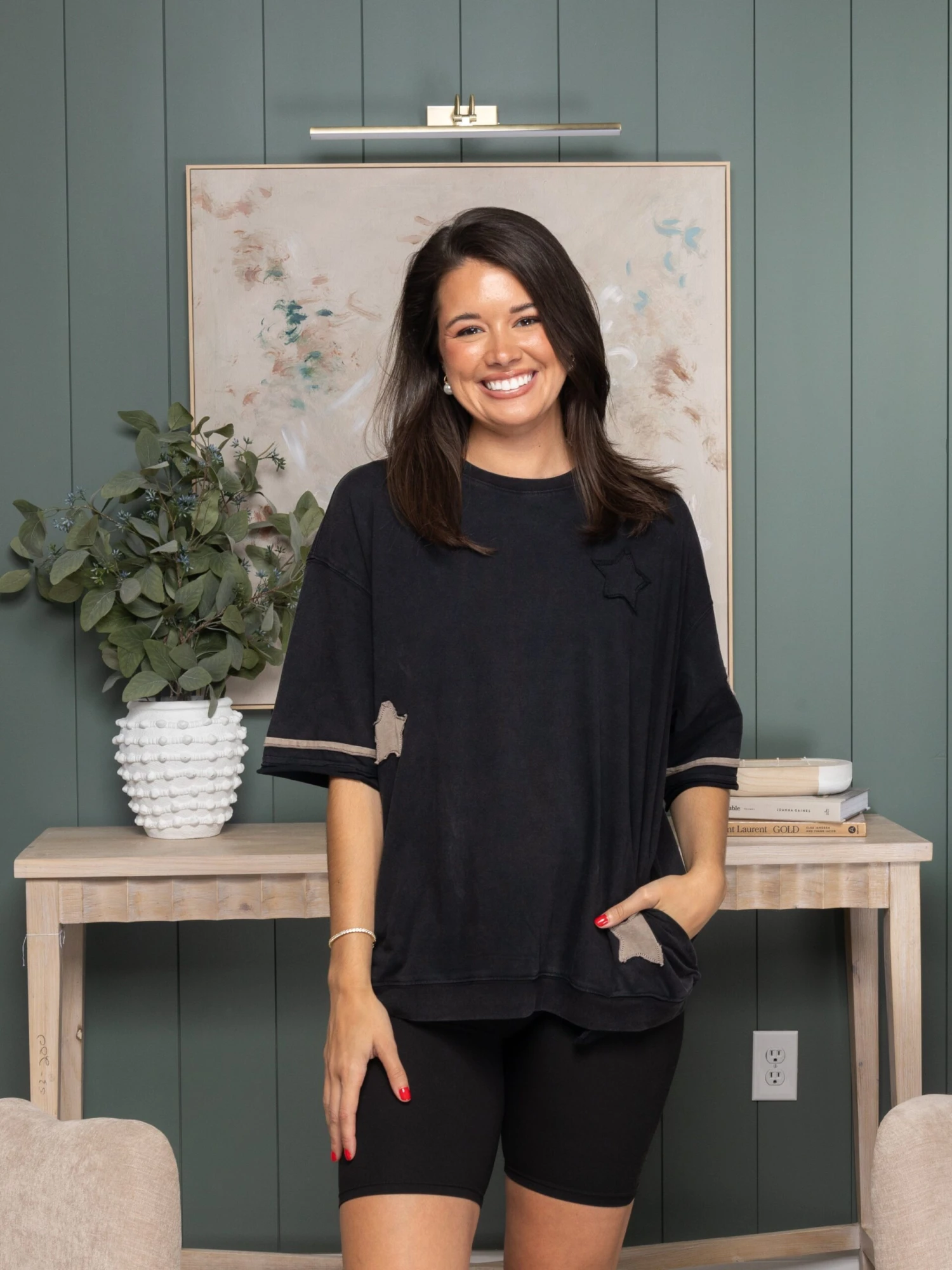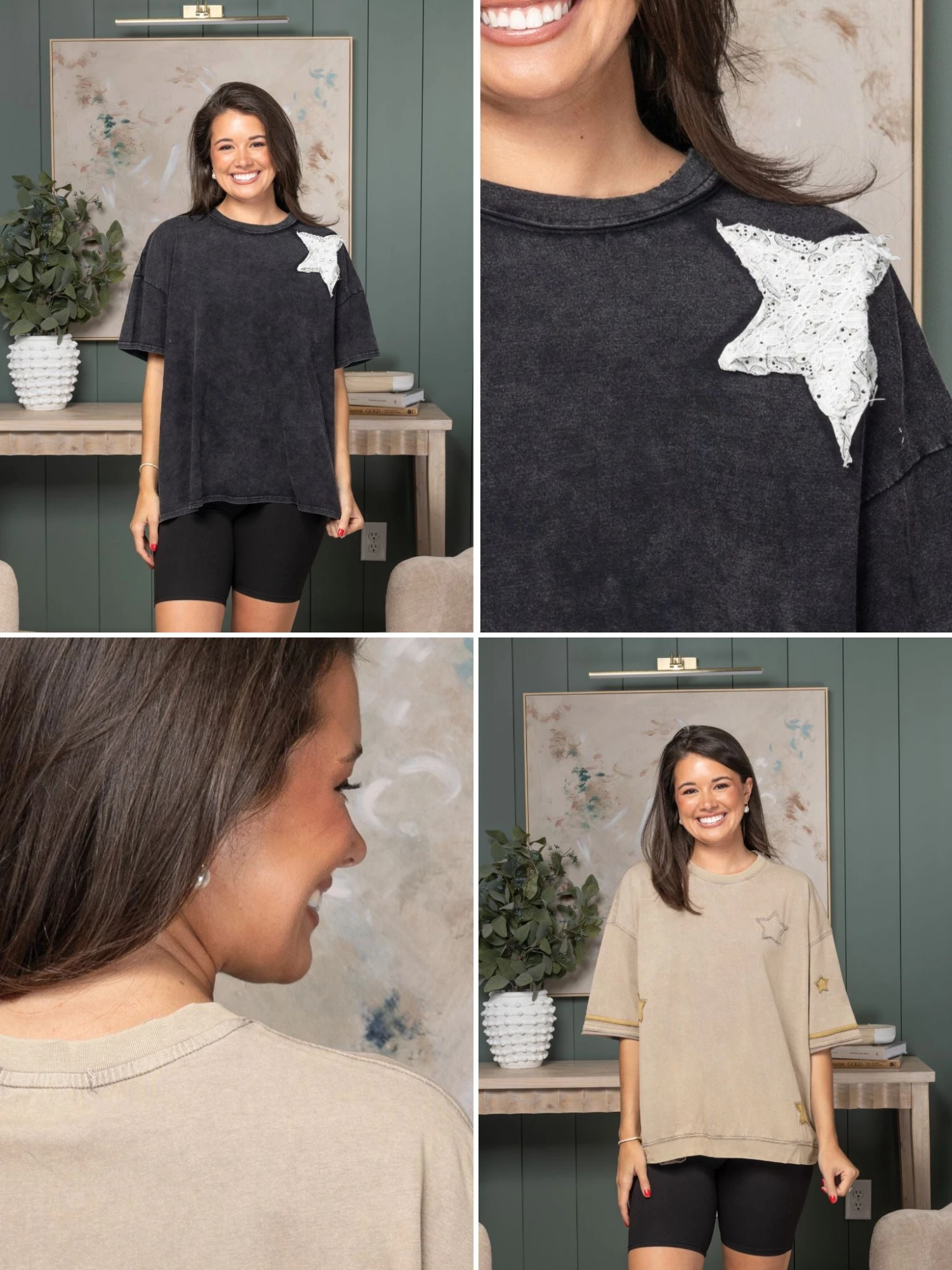 Features:Round Neck,Short Sleeve,Solid Star Patches,Round Hem