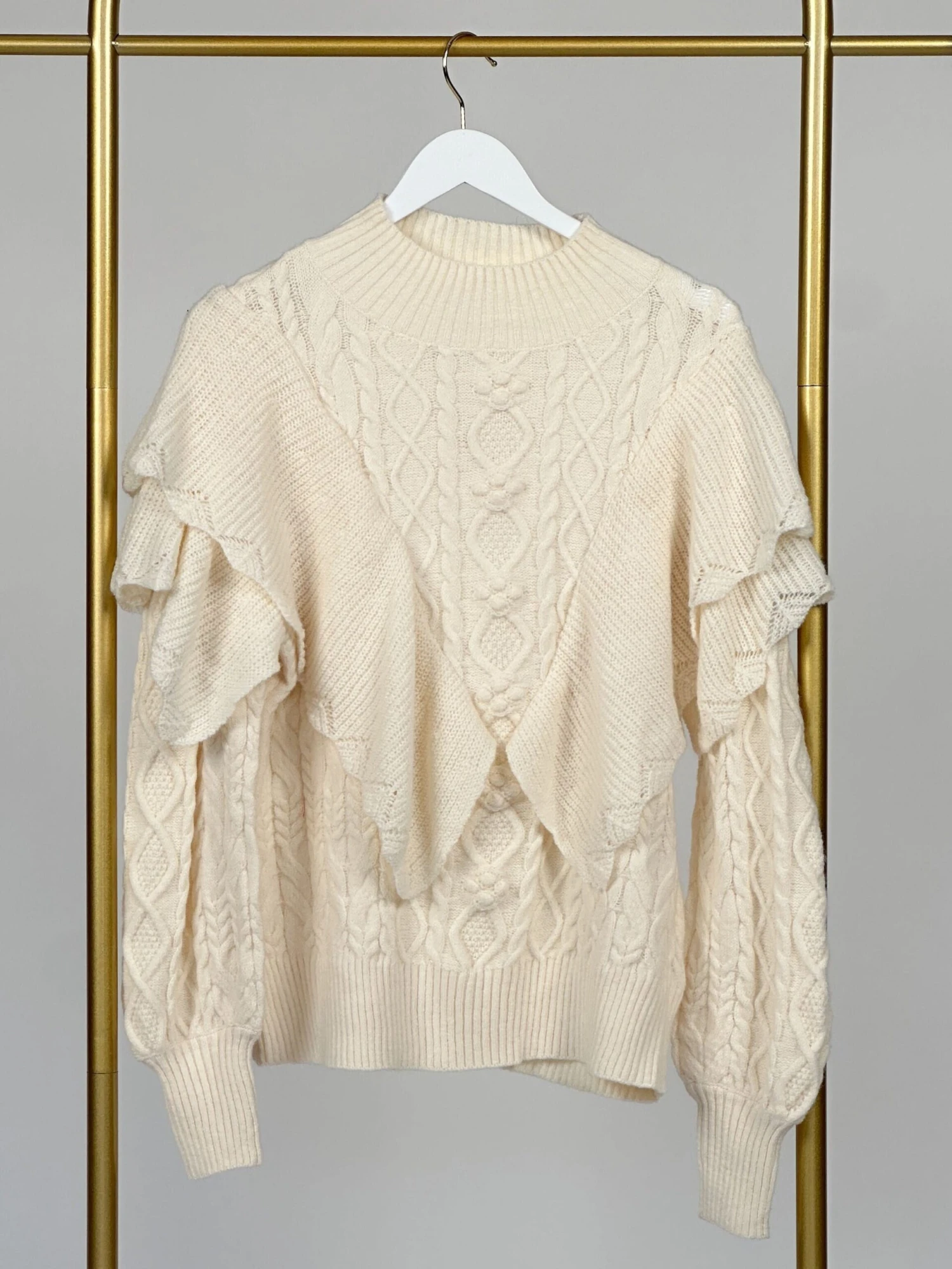 Stay warm while also making a statement! The ruffle detail is the perfect touch of sophistication to a gorgeous look! This sweater is too adorable not to snag and you know they will not last! Hurry!