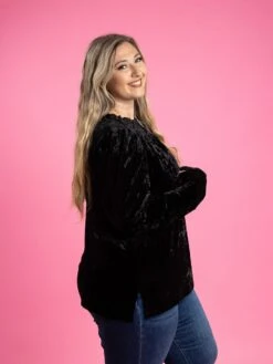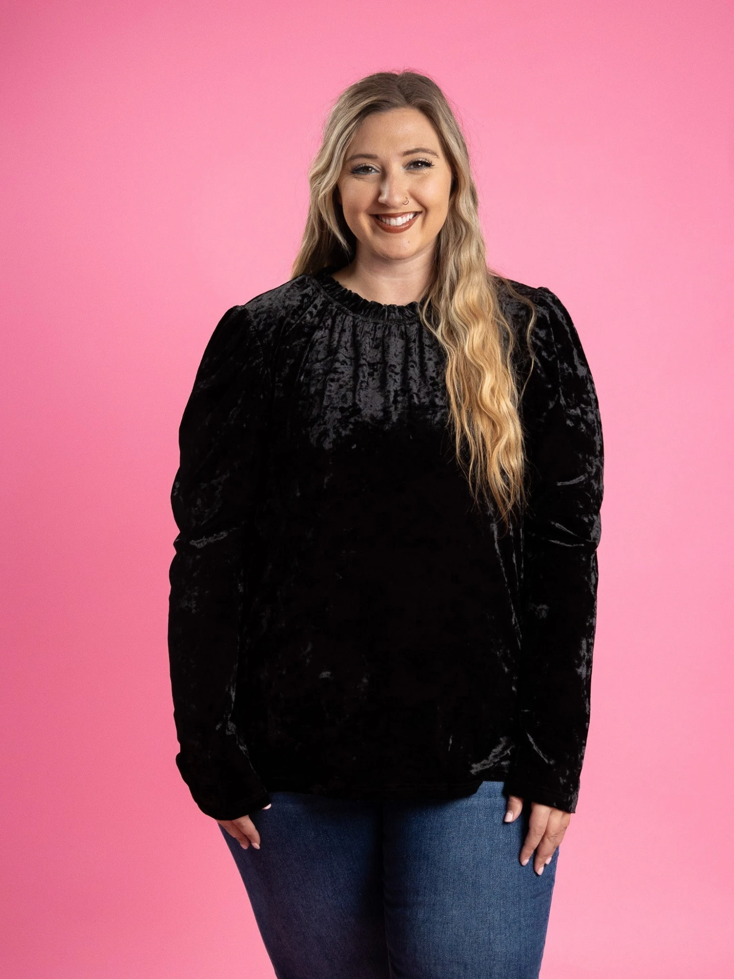 LOVE! This cute velvet top screams luxury! You’re sure to turn heads wherever you wear this stunning look!