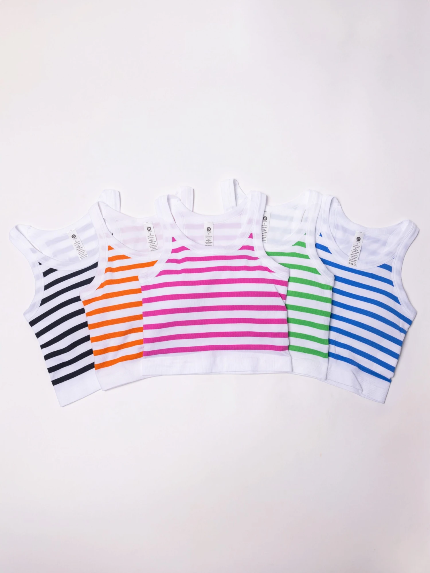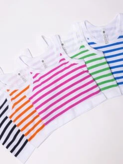 Features: Scoop Neck, Sleeveless, Padded, Stripes